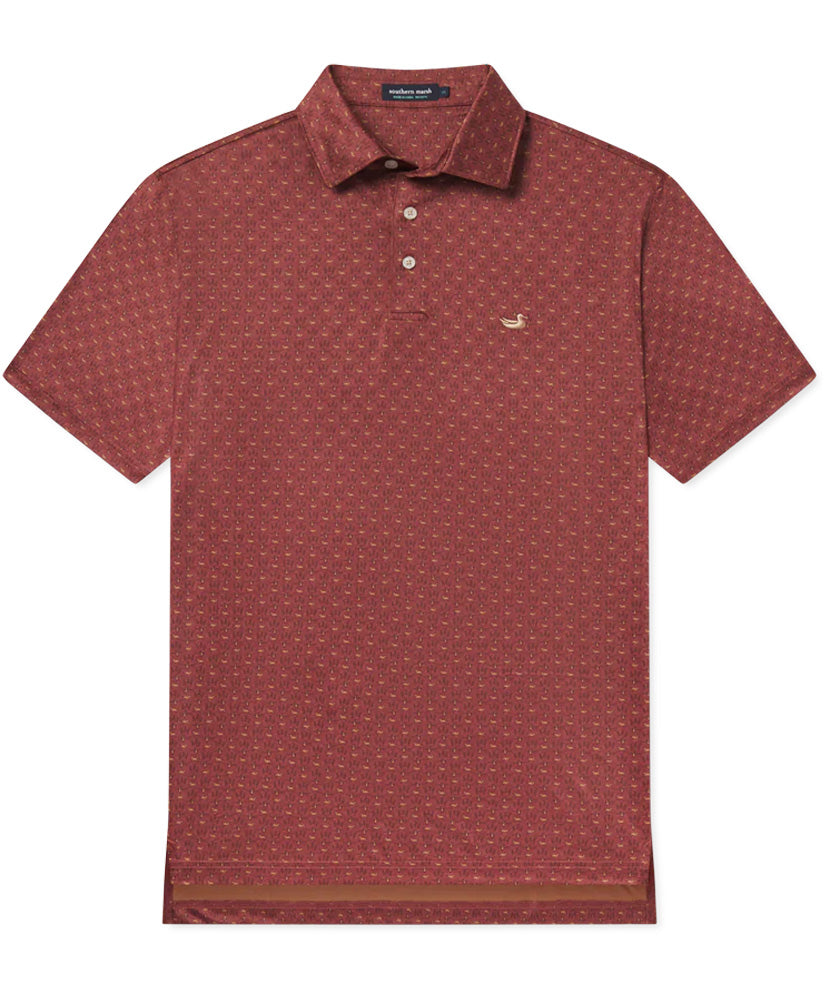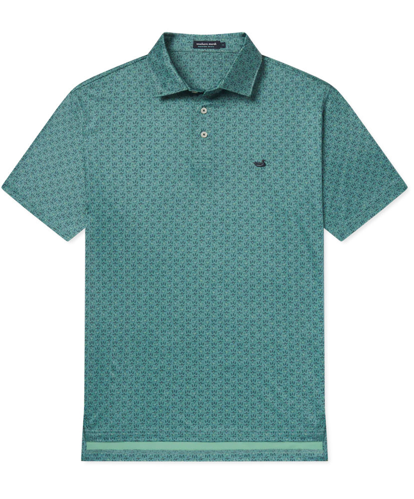 Designed for the duck hunting enthusiast, the Flyline Performance Polo—Marsh Morning boasts an all-over micro print featuring flying mallards, hunting dogs, and marshy plant life. This moisture-wicking polo is crafted from a performance blend fabric with a comfortable 4-way stretch fit, transitioning easily from the office to the golf course.