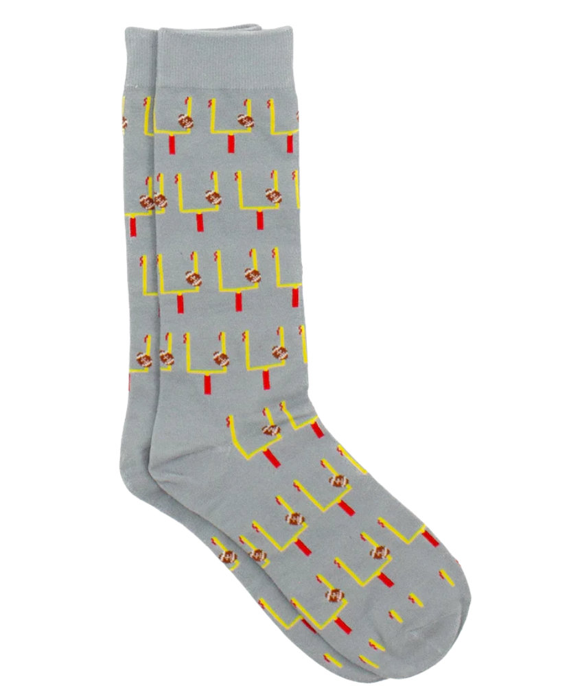 Kick off your day in style with the Lucky Duck Socks in Field Goal. Featuring playful football and goalpost graphics, these socks are a touchdown for any sports fan. Soft cotton keeps them comfortable, while just the right amount of stretch ensures they stay in place from pregame to overtime.