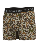 Meet the boxer briefs built for the guy who’s always on the move (or just lounging like a local). Crafted with a soft, stretchy fabric blend, these performance boxers keep you cool, dry, and supported from sunrise to sunset. Featuring a “Locals Only” waistband and signature patterns like Dog & Moon Camo, Localflage, and Tree Stand, they’re made to perform—and look good doing it.