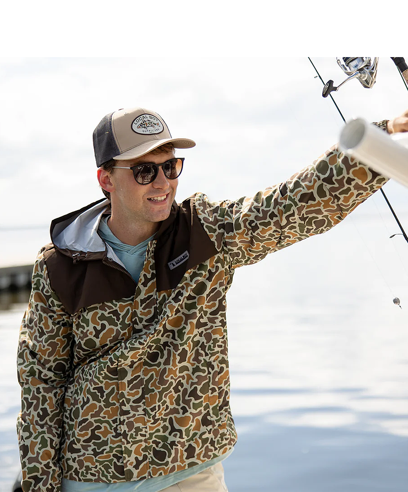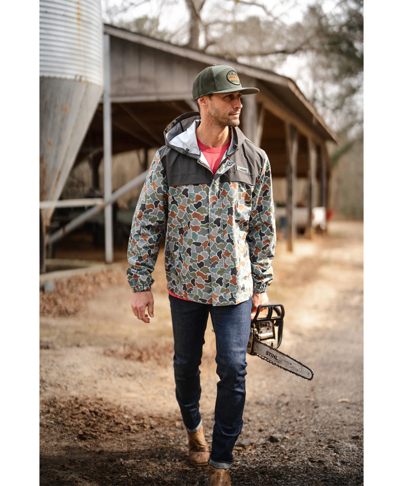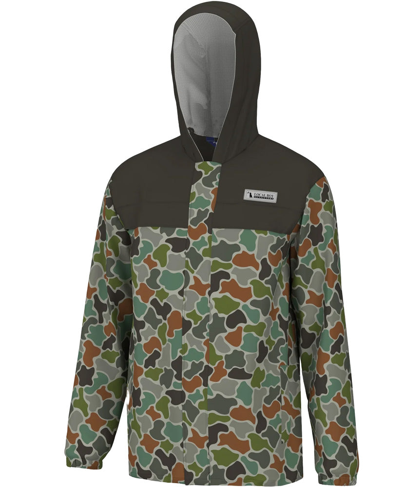 Local boy rain jackets are made to withstand the harshest of weather. Built with a snap button zipper flap and elastic drawstrings, this rain jacket is made for comfort and security. Featuring zippable exterior pockets and open interior pockets, these rain jackets are able to be stuffed into a pocket for easy storage during travel. Stay dry with local boy.