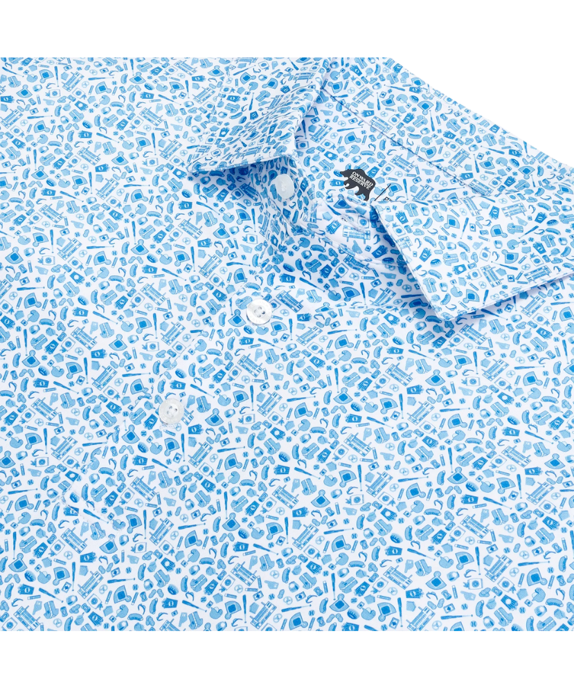Step up to the plate in style. This polo isn’t just game day ready — it is game day. Covered in everything you love about baseball (we’re talking hot dogs, bats, peanuts, scoreboards, and more), it’s the perfect uniform whether you’re in the stands, on the green, or running errands with a box of Cracker Jacks in hand.