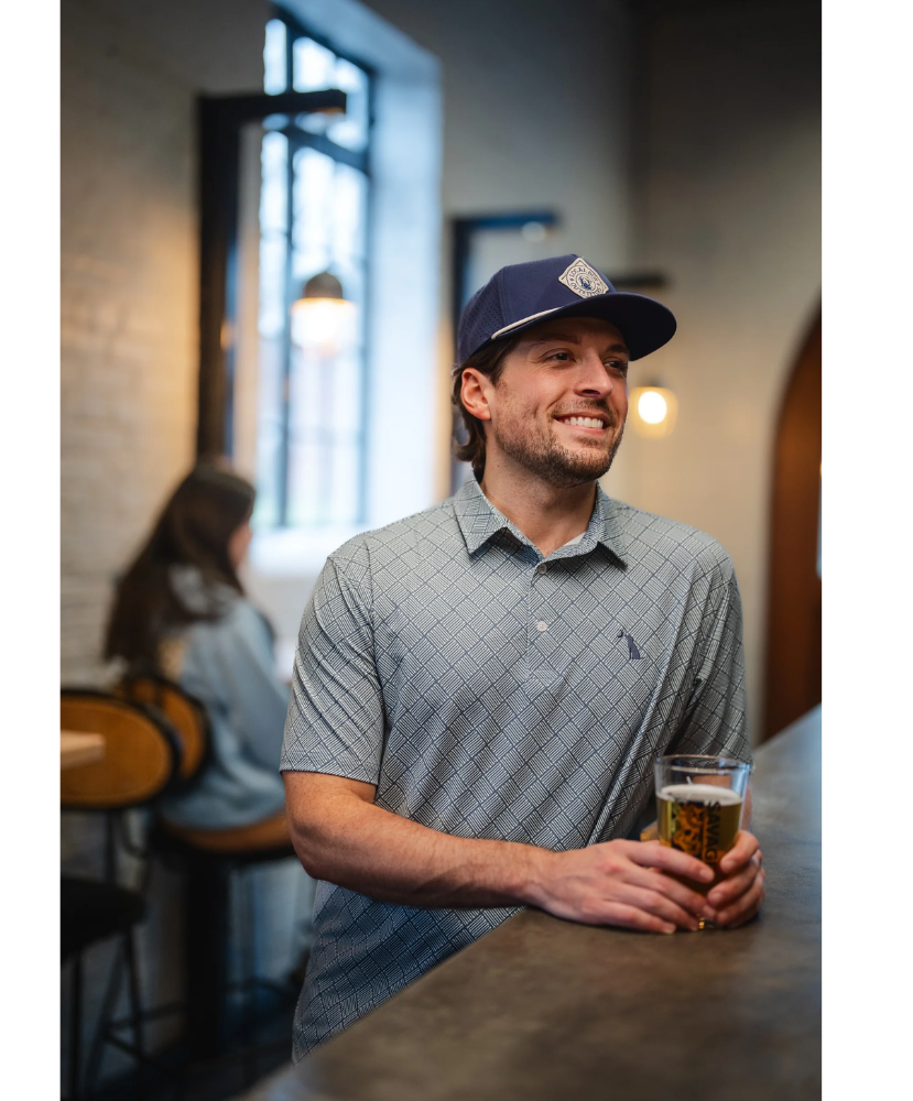 Fairways, fish fries, or Friday nights out—this polo doesn’t miss. The Tee Up Dirty Myrtle Polo is made from a breathable poly-spandex blend that stretches when you swing (or when you reach for another plate of hush puppies). Featuring the embroidered dog & moon logo on the chest and a subtle geometric print, this one’s got “instant classic” written all over it.