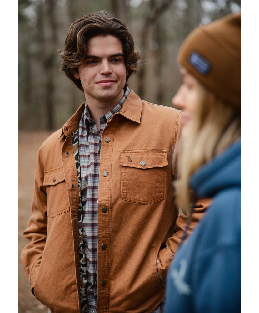 Is it a shirt or a jacket? While there's room for debate, one thing is for certain: this thing is as sharp as a tack. Cut in a traditional fit with a curved bottom hem for added mobility, this mid-weight superstar is our take on the traditional chore jacket. Featuring logo snaps at the placket and "snap-flap" upper exterior pockets, accented these slick tricks with contrasting designs on the interior of the lower hand pockets and collar. Double stitched throughout for durability and finished off with stacked buttons at the cuff and a leather LBO logo patch at the back, this versatile do-all is sure to add some smooth to your groove.