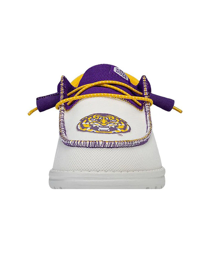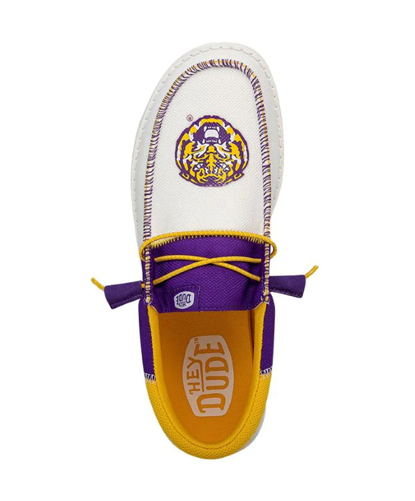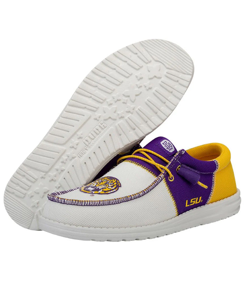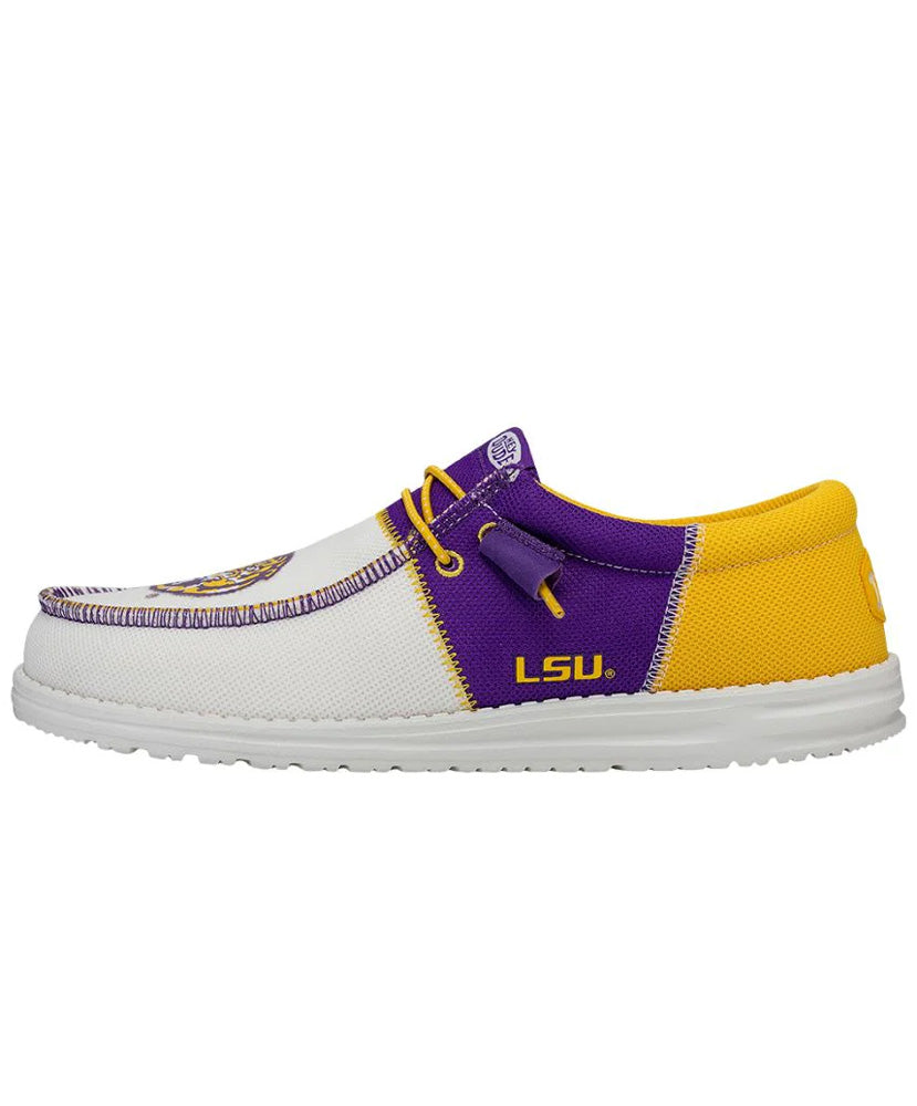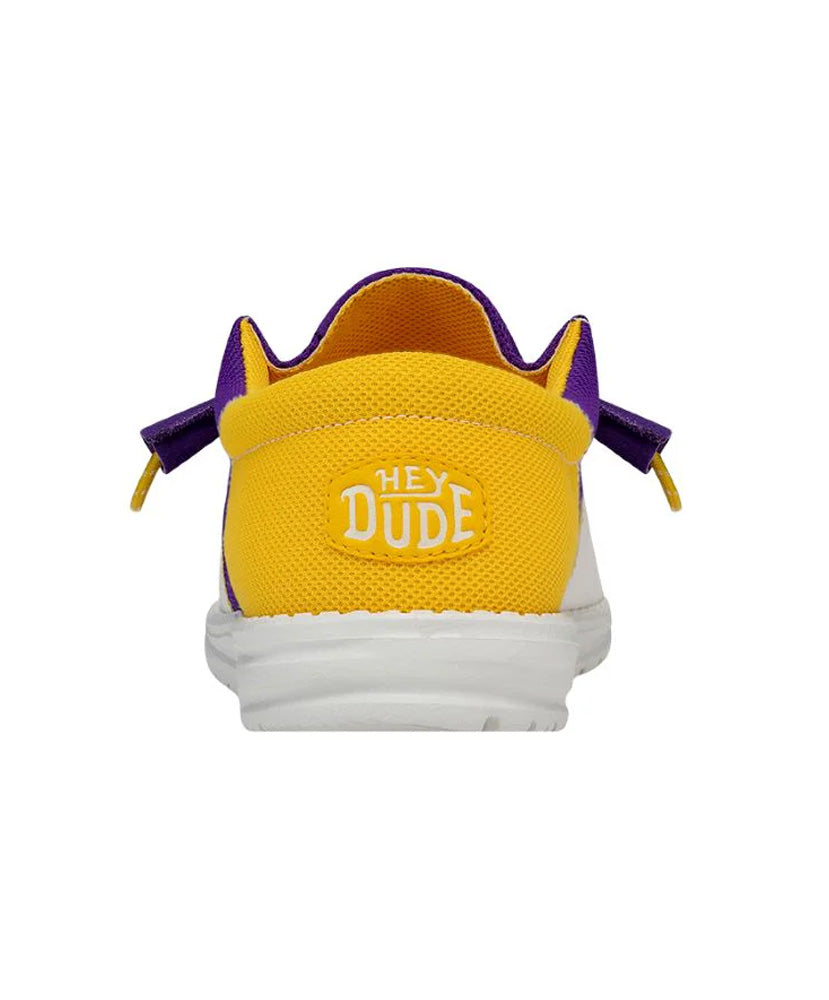 The Men's Wally Tri now screams school spirit! Show your support for the LSU Tigers in style with a unique design featuring the iconic logo and bold team colors. Made with signature HEYDUDE™ comfort, lightweight materials, and a slip-on design, these are perfect for all-day wear to bring you and your crew from the tailgate to the game.