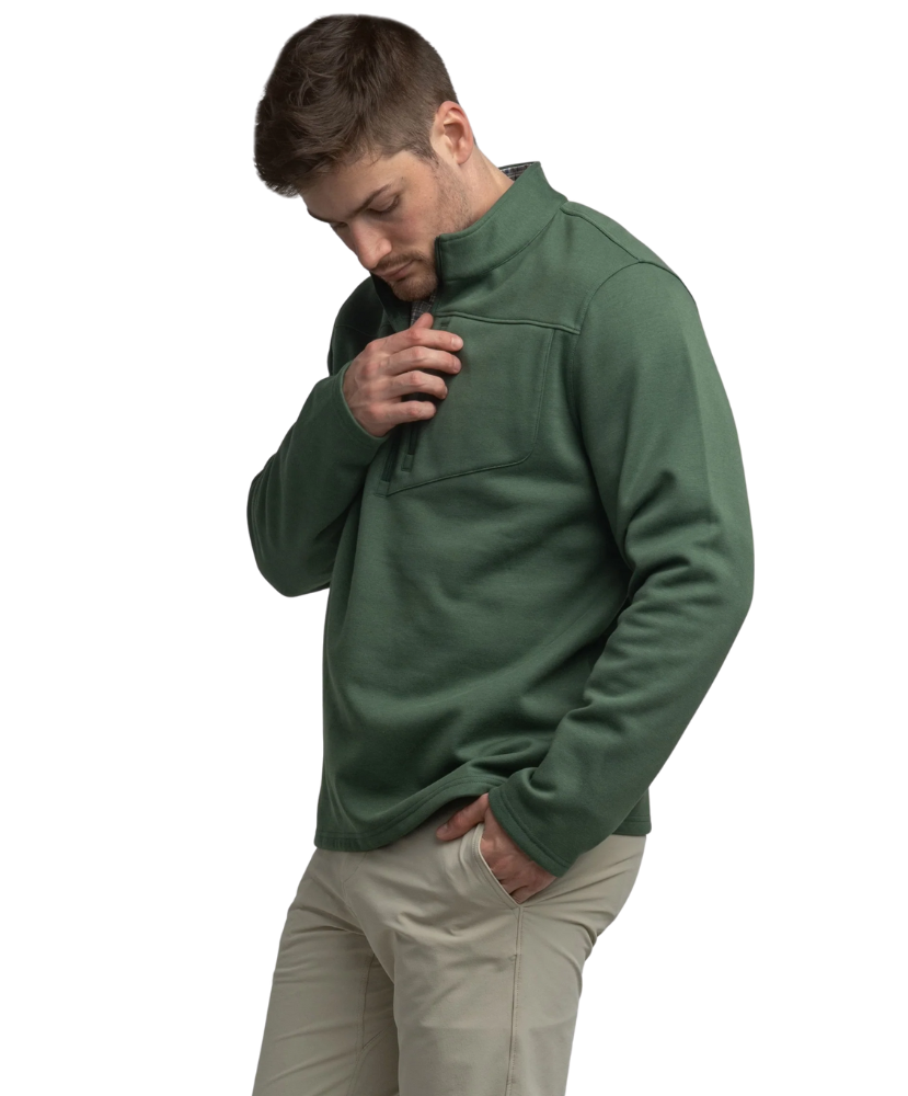 Meet the quarter zip that pulls double duty—structured enough to wear to the office, cozy enough to nap in. The smooth exterior gives it a sharp, put-together look, while the brushed fleece lining feels like a first-class upgrade for your layering game.