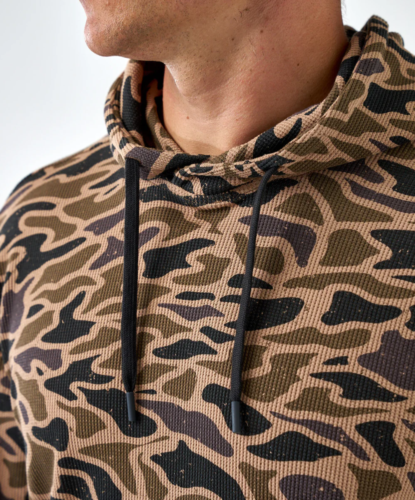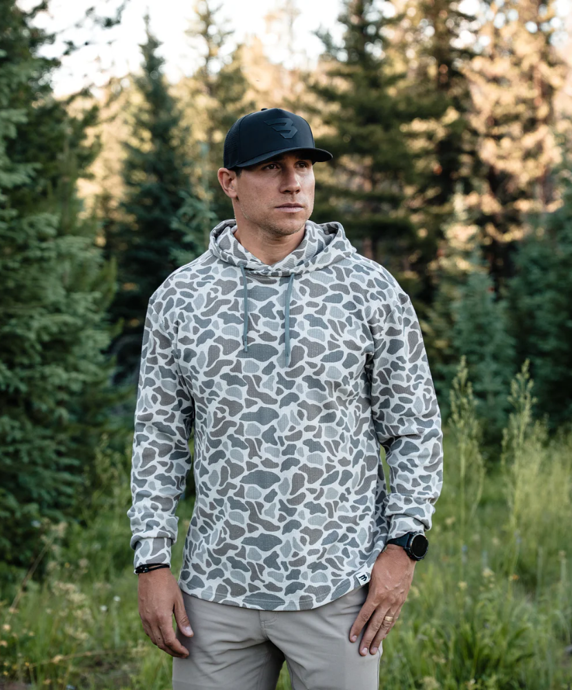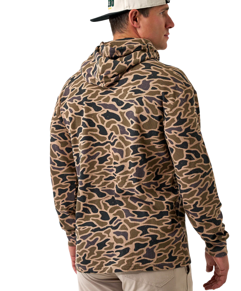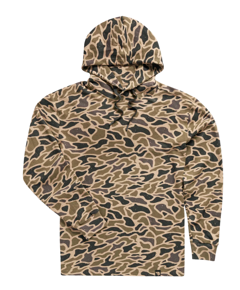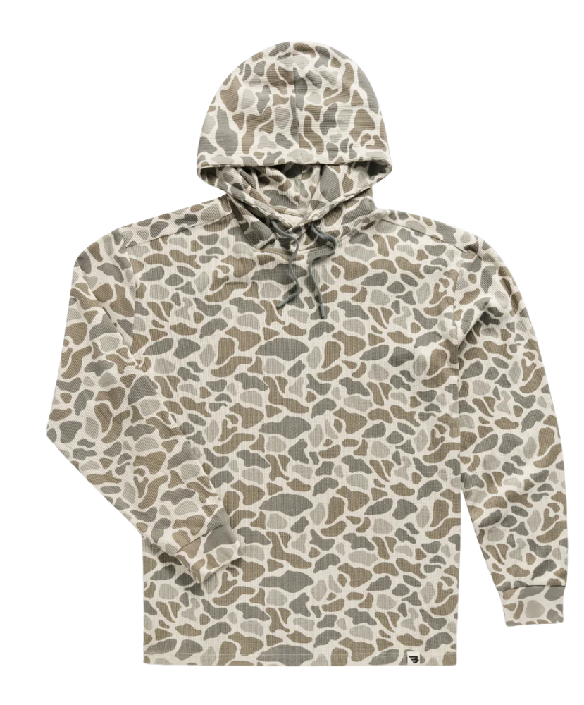 The Burlebo Thermal Hoodie is built for lightweight warmth and laid-back comfort. Crafted from a soft cotton blend with a breathable waffle knit texture, it’s perfect for cool fall mornings, post-hunt hangs, or throwing on by the fire. Designed with a relaxed fit, it layers easily under a jacket but holds its own as an everyday essential. Finished with an easy pullover hood and rugged camo patterns that stand out while blending in.