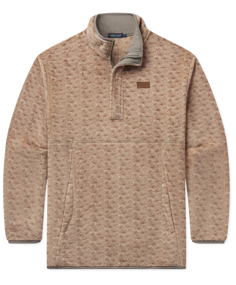 Featuring an all over Agave Plant pattern, the Jalisco Retro Fleece Pullover is soft, cozy and has a roomy kangaroo pocket on front to warm your hands on chilly days. This pullover offers a contrasting quarter zip collar and is a great pair with any of our authentic tees and regatta stretch chino pants for a casual, vintage western look.