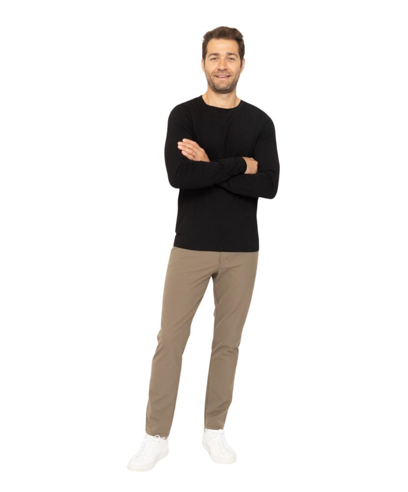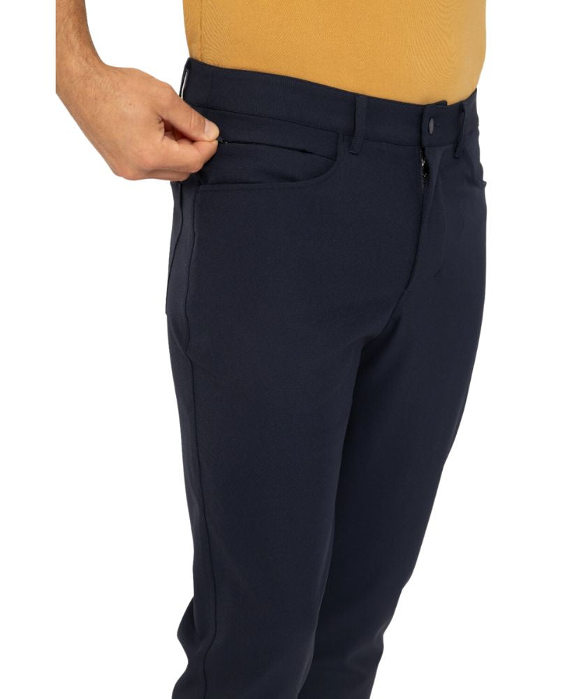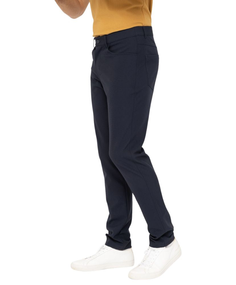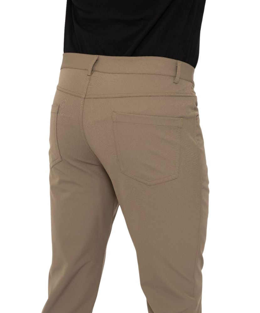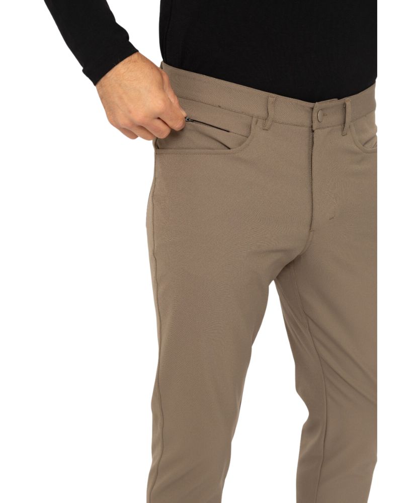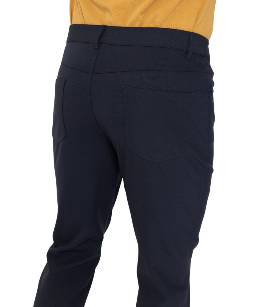 Take this classic style on and off the green! These 5 pocket pants are made in a stretch woven fabric and feature gussets for added mobility, an invisible zip pocket inside the wearers right hand pocket, and belt loops.