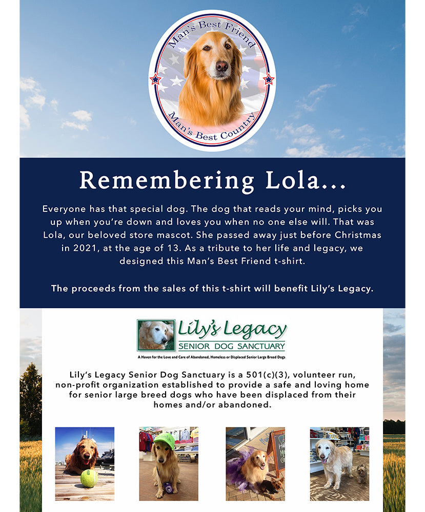 Everyone has that special dog. The dog that reads your mind, picks you up when you’re down and loves you when no one else will. That was Lola, our beloved store mascot. She passed away just before Christmas in 2021, at the age of 13. As a tribute to her life and legacy, we designed this Man’s Best Friend t-shirt.