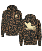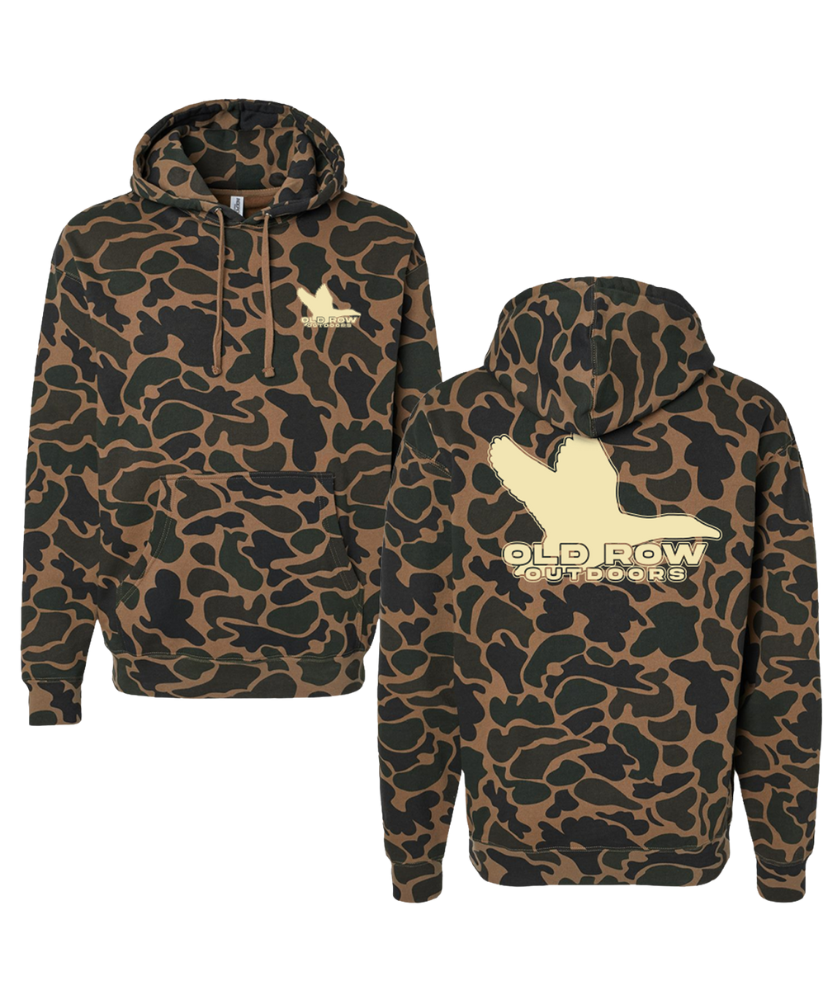 Warning: wearing this hoodie may cause sudden urges to call ducks at inappropriate times (office meetings, weddings, etc.). The Outdoors Flying Duck Hoodie brings heavyweight warmth and heavyweight style, decked out in camo with a big ol’ duck on the back so everyone knows where your priorities lie. Made with premium cotton fleece, it’s perfect for the blind, the bar, or blacking out at deer camp.