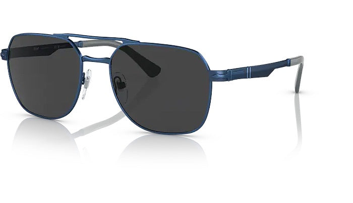 New Persol pilot shape characterised by metal temples with flex hinges and differently colored temple tips for a unique design twist.
