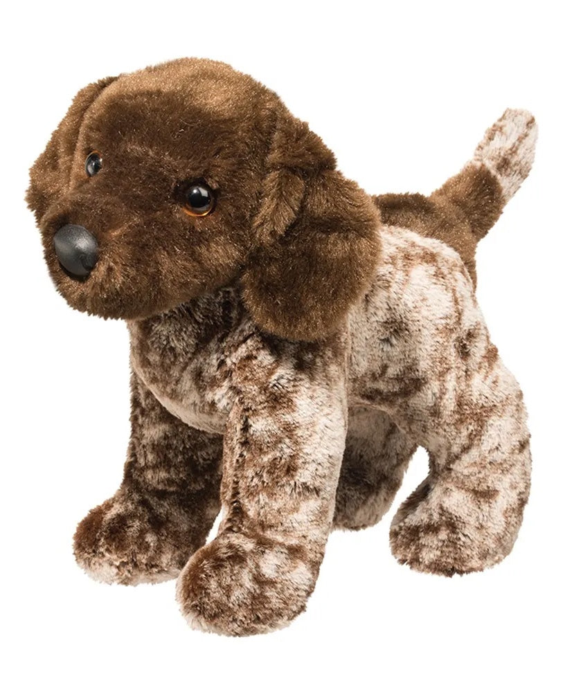 The boundless energy and handsome appearance of the German Pointer breed is realistically represented in Ivan, the German Pointer stuffed animal! Featuring a velvety soft brown and white spotted coat with mottled ticking, Ivan looks just like his real life counterparts! With his floppy brown ears and warm, amber colored eyes, this lovable hound will run away with your heart.