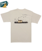 Perfect for kids who can turn a blanket fort into a duck blind, this tee is built for every little outdoorsman-in-training. Made from 100% Pima cotton, it’s soft enough for lounging, tough enough for backyard adventures, and ready to handle snack breaks in between. The hand-drawn duck blind scene brings the hunt to life, while the pocket duck logo keeps it Properly Tied.