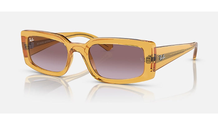 Ray-Ban RB4395 Kiliane Bio-Based sunglasses are a must-have for the eco-conscious fashionista. Crafted from sustainably sourced acetate, these stylish sunglasses come with gradient violet lenses and transparent yellow temples. The perfect choice for anyone who wants to look good while doing good.