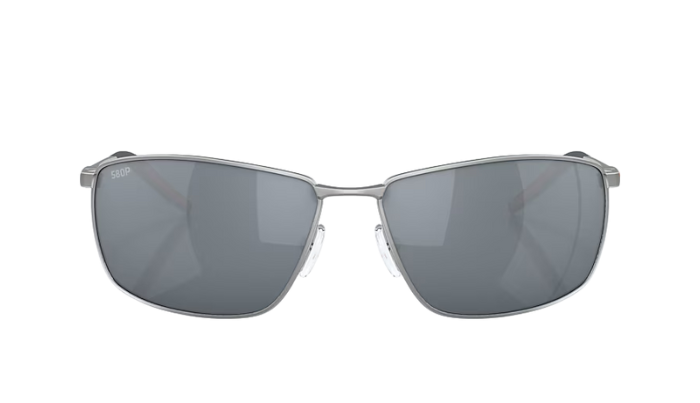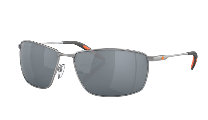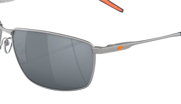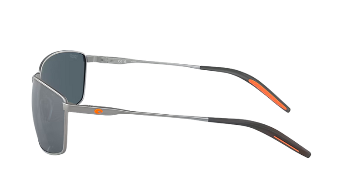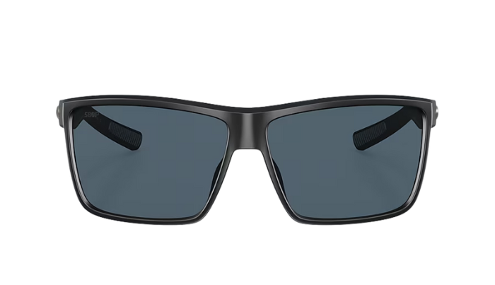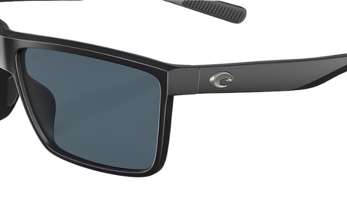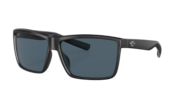 Rimless Costa Sunglasses with gray lenses and black frames on a white background