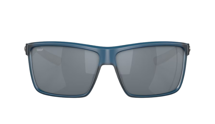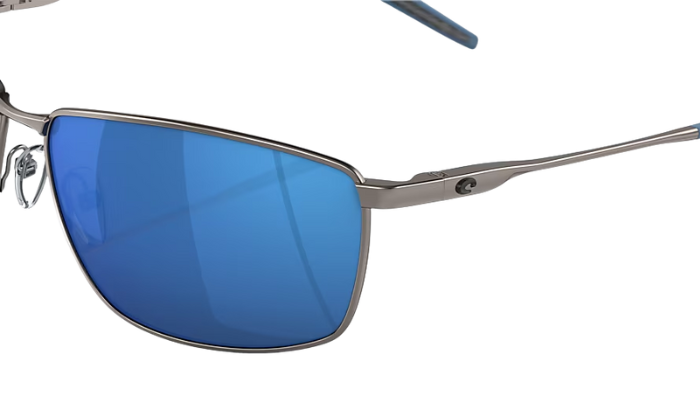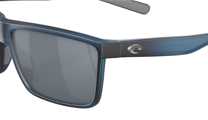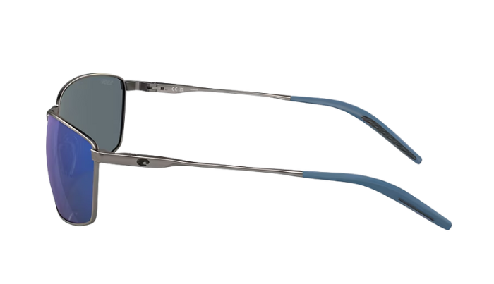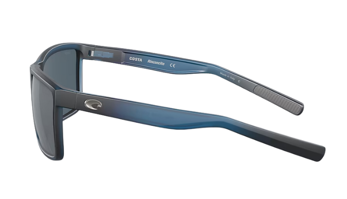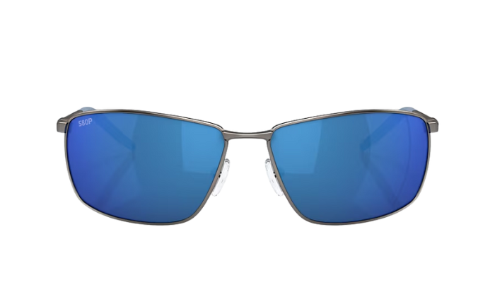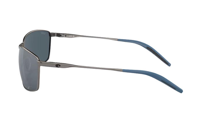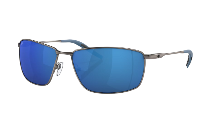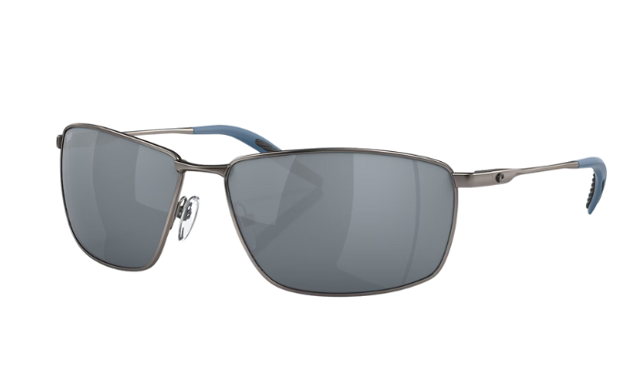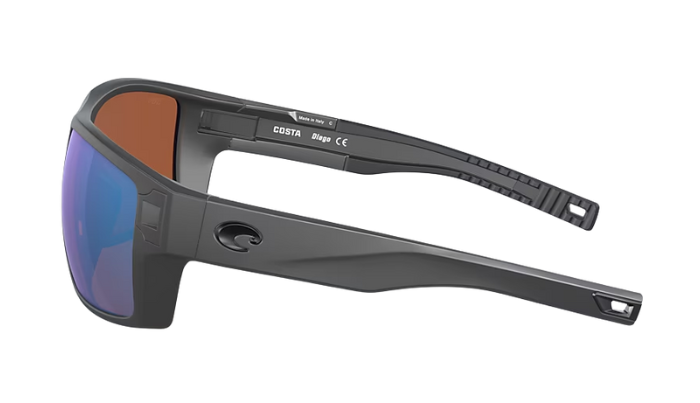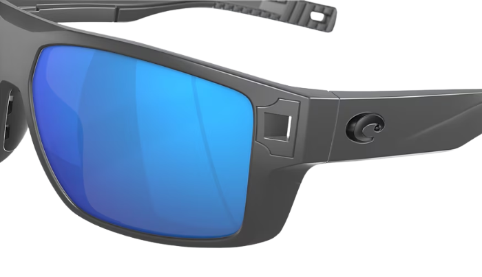 Matte Gray Costa sunglasses with blue lenses on a white background