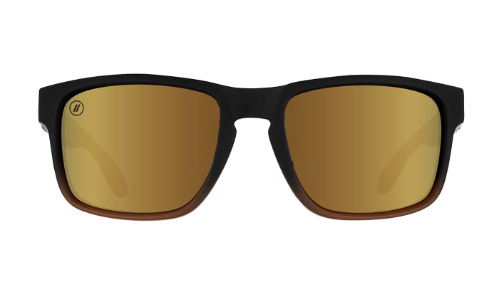 'Gold Punch' hits hard with equal doses of style and performance. The polarized copper lens is complemented by a solid black to crystal brown fade on the front frame and temples, adding a subtle twist to these sports sunglasses.
