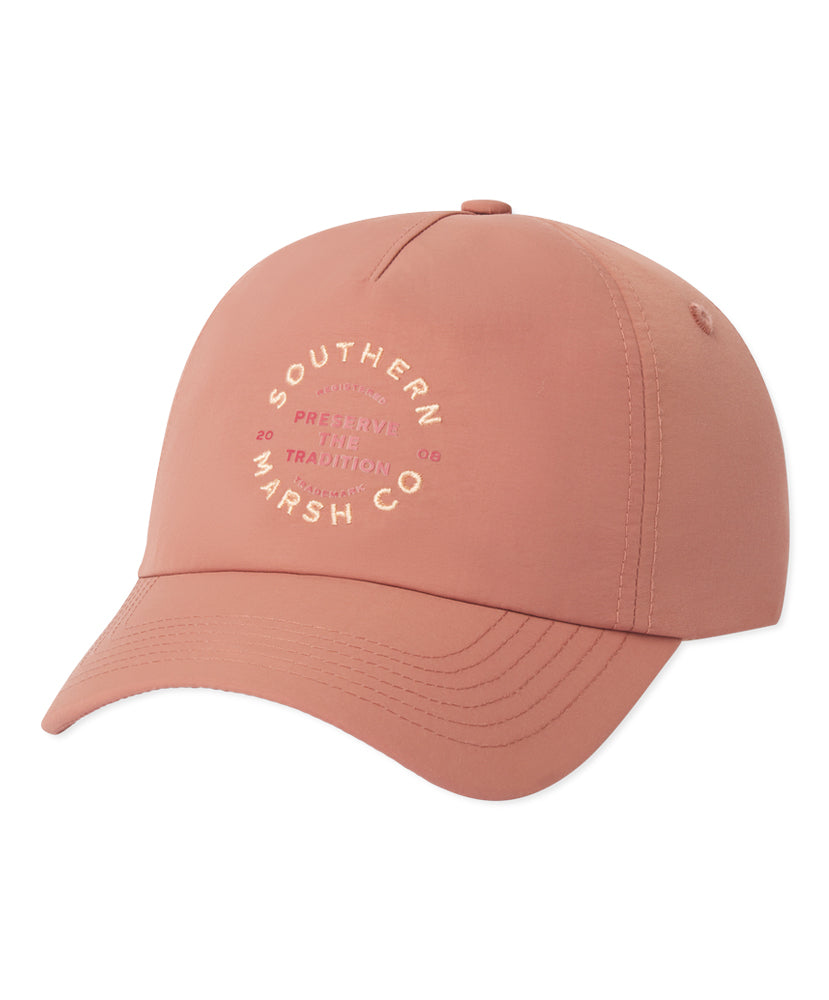 This Marsh Traditions Performance Hat is crafted from quick dry fabric and boasts a vintage Preserve the Tradition logo on front. This unisex hat is a comfortable and classic option perfect for all day wear.