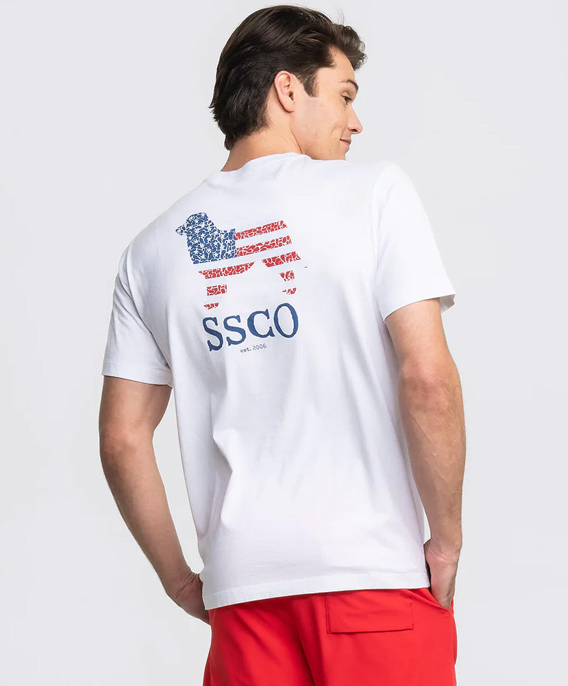 Elevate your wardrobe with the men's camo graphic tee featuring an American flag touch. Comfort meets style in this must-have camo shirt for any casual occasion.