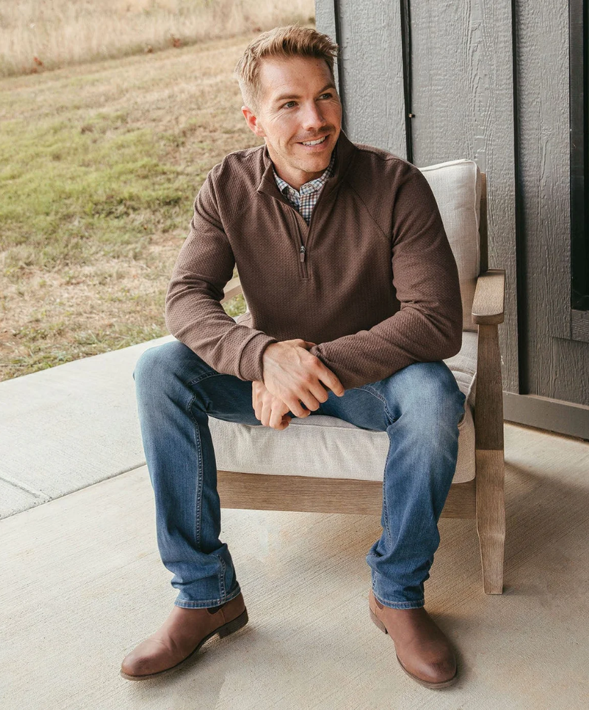 Meet the quarter zip that works as hard as you do. The Dallas combines a textured ottoman knit with sporty raglan sleeves and a hidden kangaroo pocket for a sleek, functional upgrade. Soft, stretchy, and pre-shrunk for the perfect fit, it’s built to keep up whether you’re on the move or kicking back.