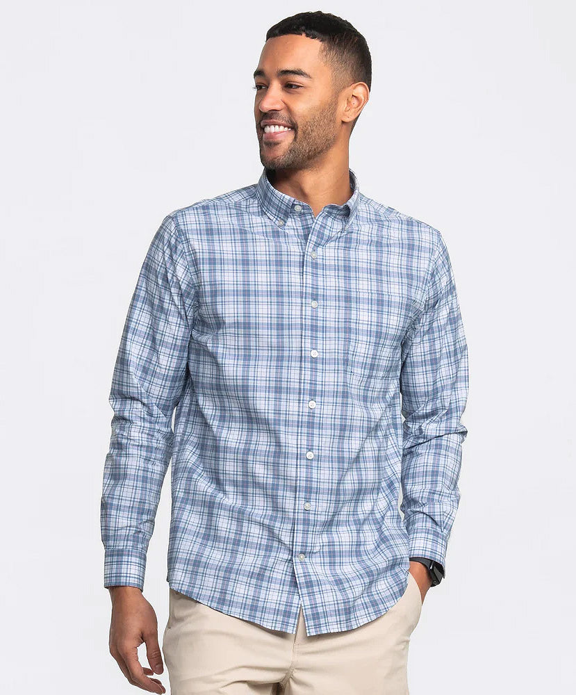 Crafted for comfort, the Franklin men's plaid shirt boasts timeless style. The buffalo plaid design offers a versatile look, perfect in a long sleeve cut for year-round wear.