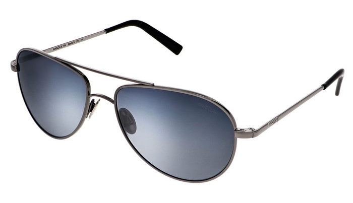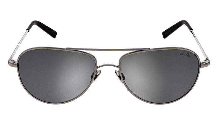 An aerodynamic aviator that fits most face shapes. Gunmetal quality frame finish.