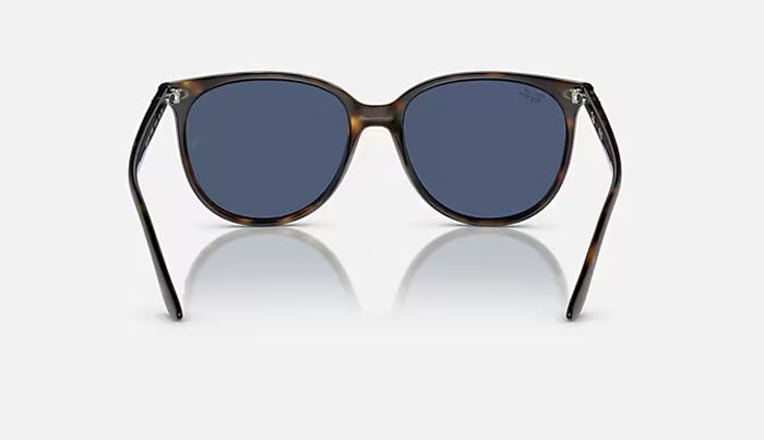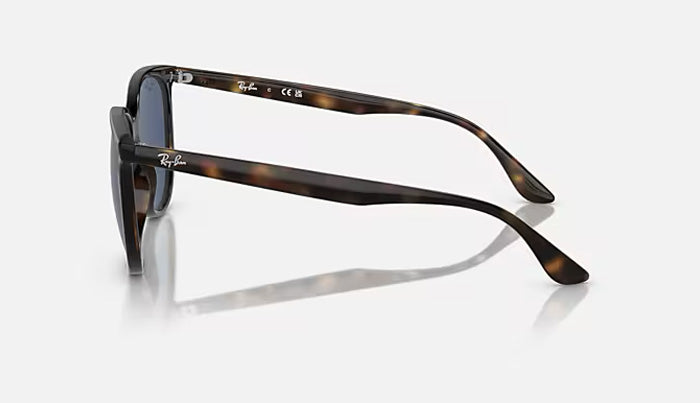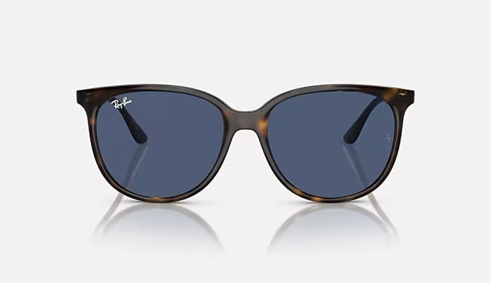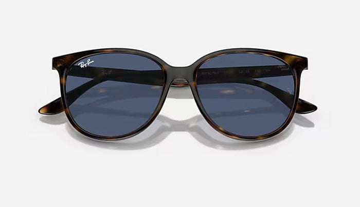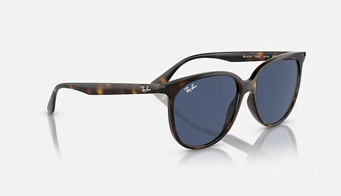 Ray-Ban RB4378 sunglasses are a classic women's shape that has stood the test of time. The Havana frames are paired with dark blue lenses for a polished look perfect for any occasion. The unique square shape and thin temples make these shades comfortable and easy to wear.