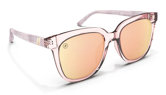 Just like you, this style knows its worth. 'Gemstone Gal' is meant for big days out with besties, sunny afternoons, and sizzling evenings—nothing else will do. So if you call the glam life your own, these glossy, crystal peach sunnies are the perfect companion. The champagne polarized lenses reduce glare, while the peach & white tortoise temples induce stares. These make a statement—and so will you. //
