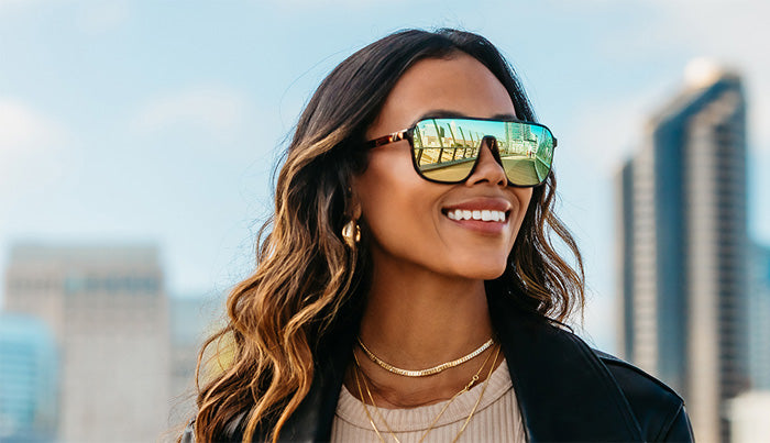 - Lens Color: PureBlend Aqua Champagne Mirrored