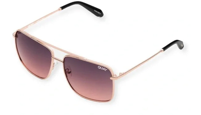 QUAY Hot Take Sunglasses Rose Gold Frame Smoke to Pink Ombre Gradient Lenses Unisex NWT Go ahead, give us a HOT TAKE. These square frames take it up a notch with a classic brow bar for peak coolness.
