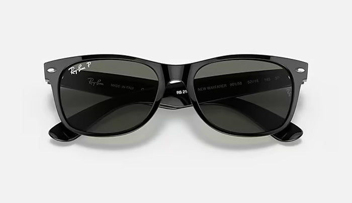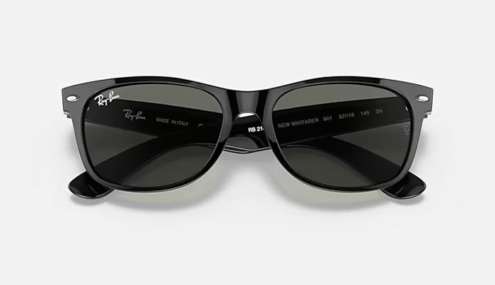Choose classic black frames in a variety of lens treatments including crystal green, bi-gradient, G-15 polarized and mirror styles. All Ray-Ban New Wayfarer Classic sunglasses are designed to offer an easy fit with a high level of visual clarity and protection.
