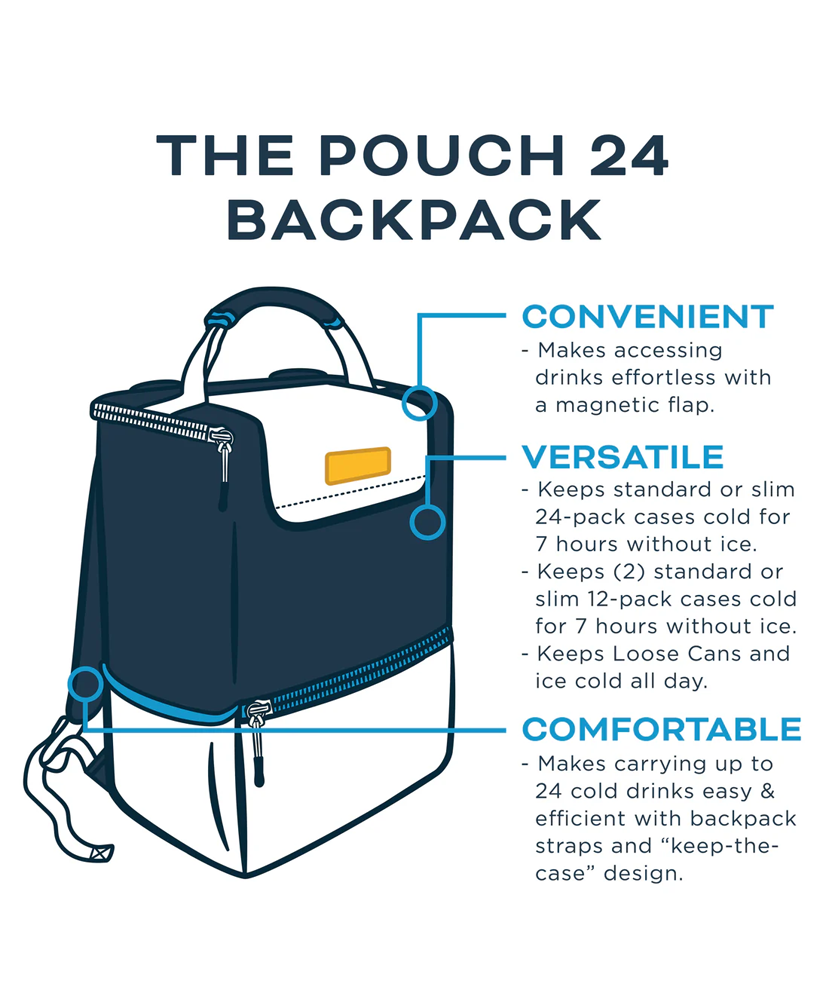 Go ice or iceless with the lightweight backpack cooler that keeps your brews chilled and your hands free to grab another round. Slip the pouch over a cold 24-pack of beer or stack a couple of 12-packs inside to keep bevs chilled for up to 7 iceless hours—or mix and match up to 20 loose cans of whatever quenches your thirst along with some ice to keep drinks cold all day. Padded, adjustable backpack straps give this beer cooler a comfy carry whether you’re hitting the beach, the trails, or the game. Our easy-access magnetic flap closure keeps the good times flowing, and 3 versatile pockets give you a safe spot to store small essentials.