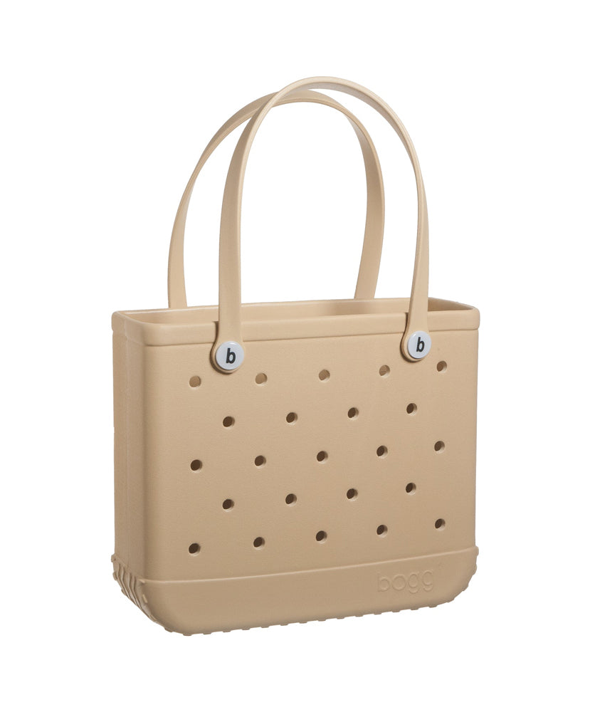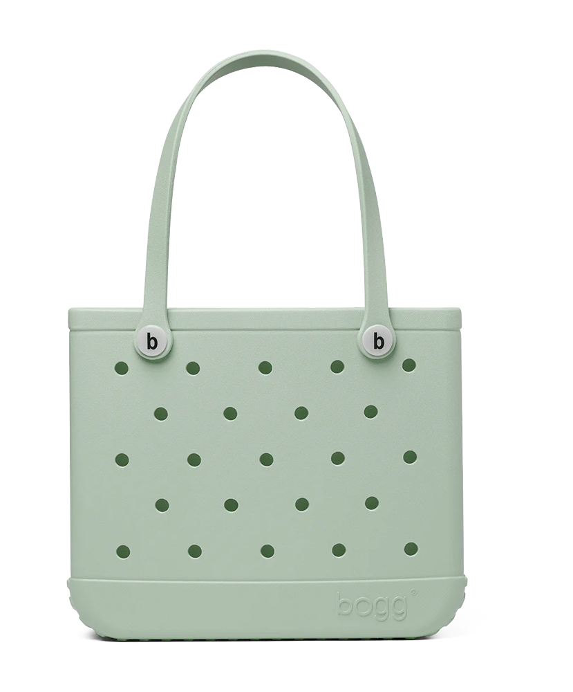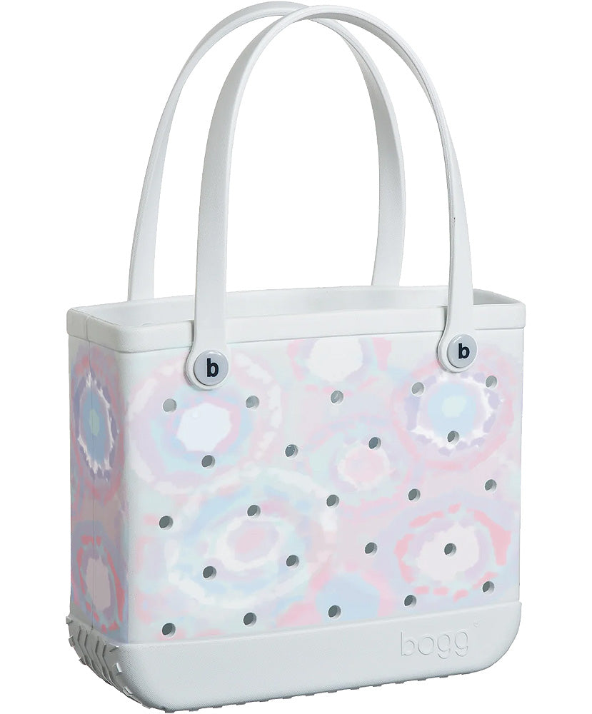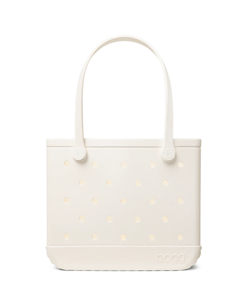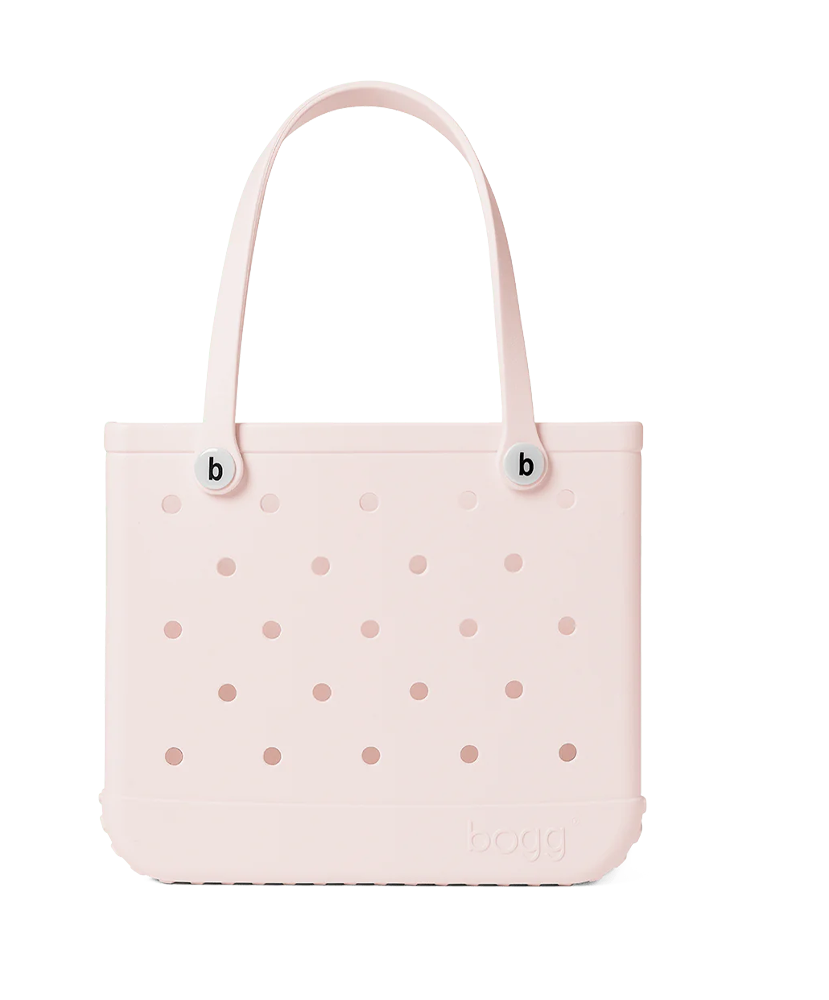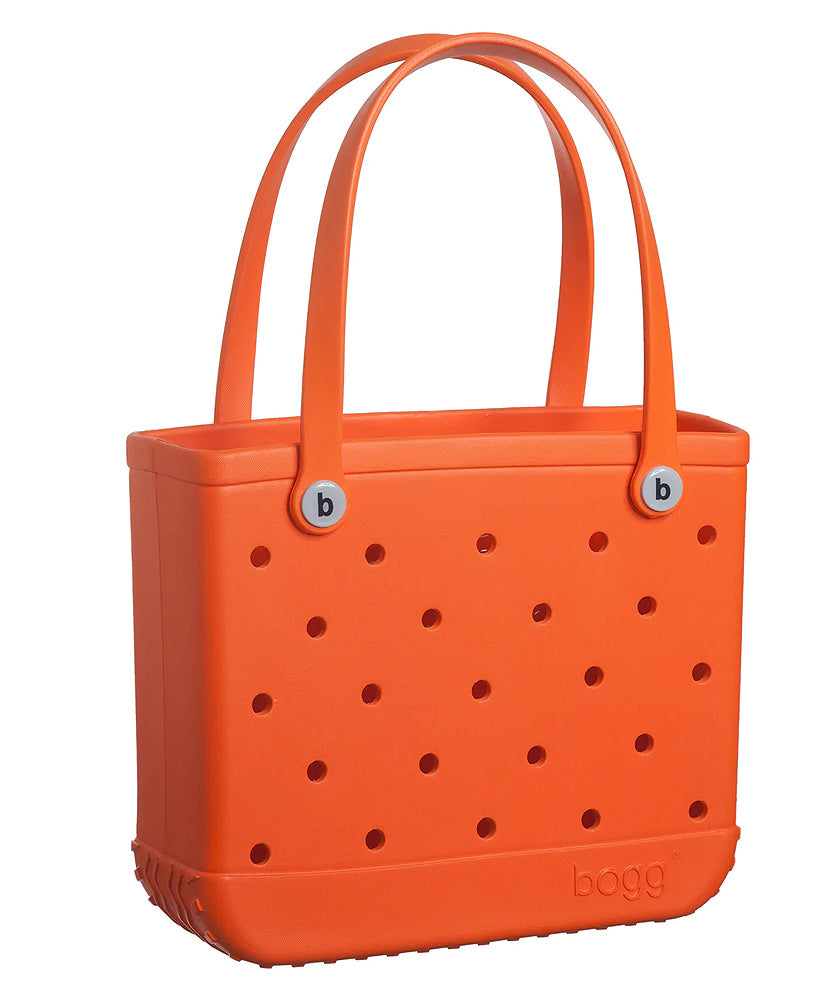 Maybe Baby, but not very small! Measuring in at a healthy 15x13x5.25, the Baby Bogg Bag features everything you know and love about the Original Bogg Bag, but in a smaller size. Each Baby Bogg Bag comes with one clear insert bag with 2 white buttons on the back that snaps into the holes, anywhere inside or outside the bag, to keep smaller items in reach.