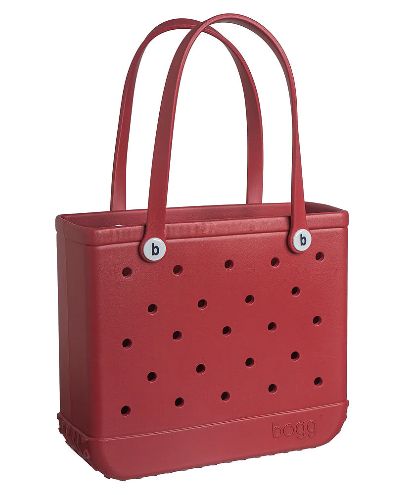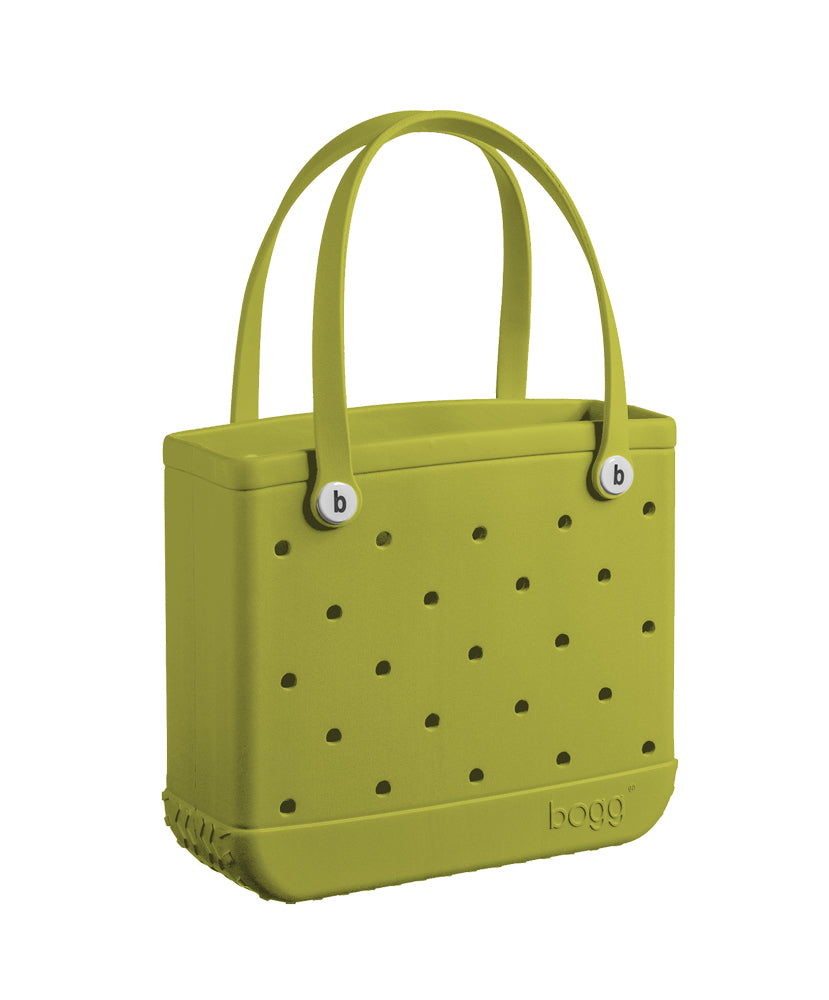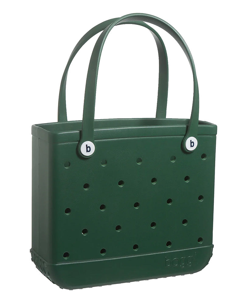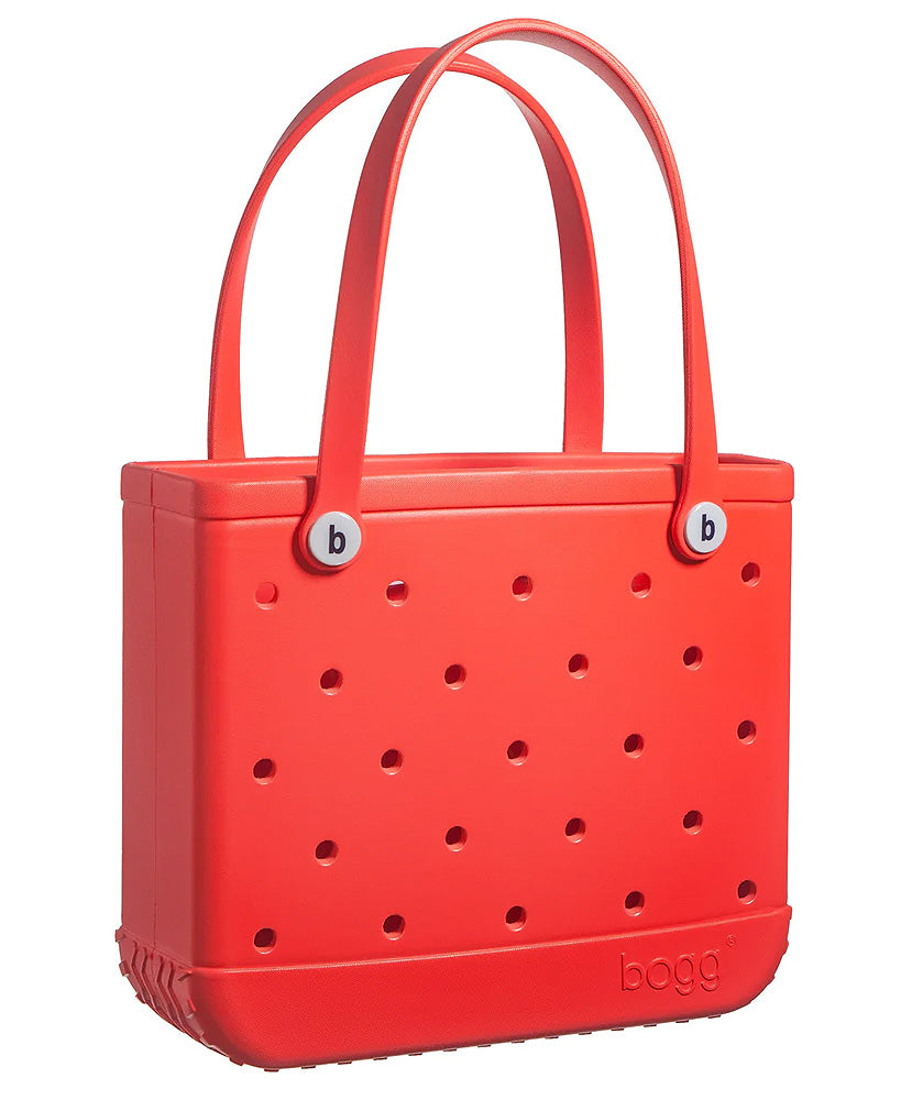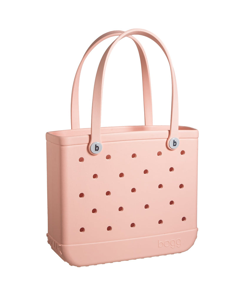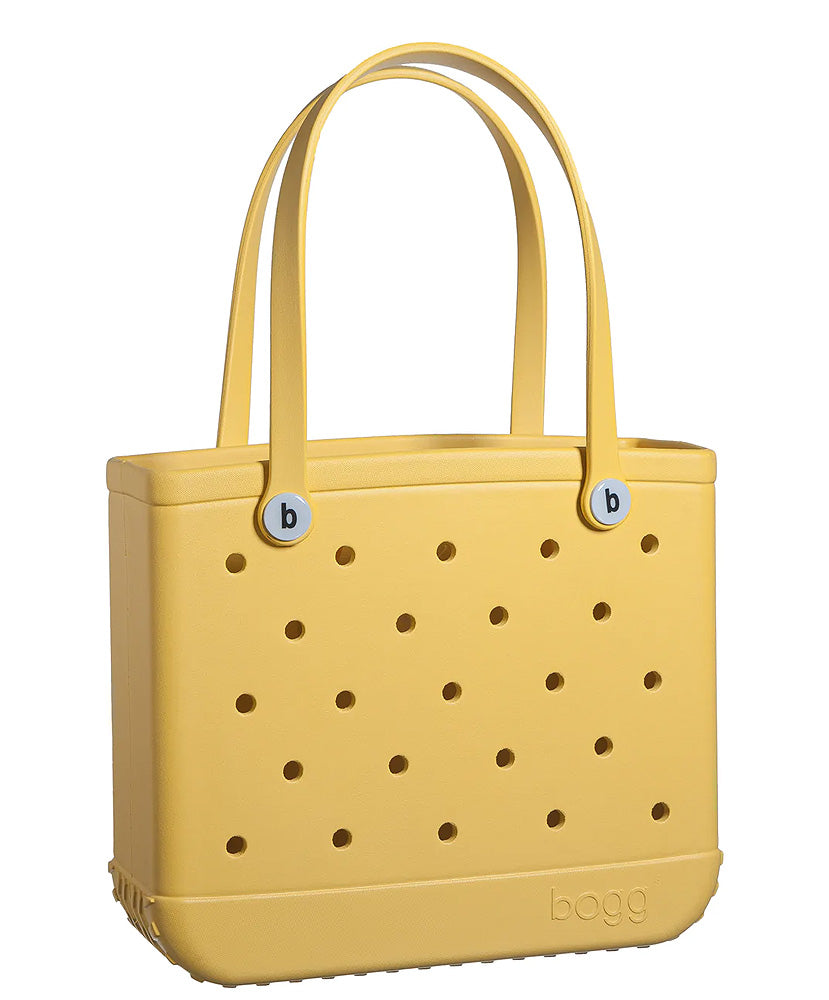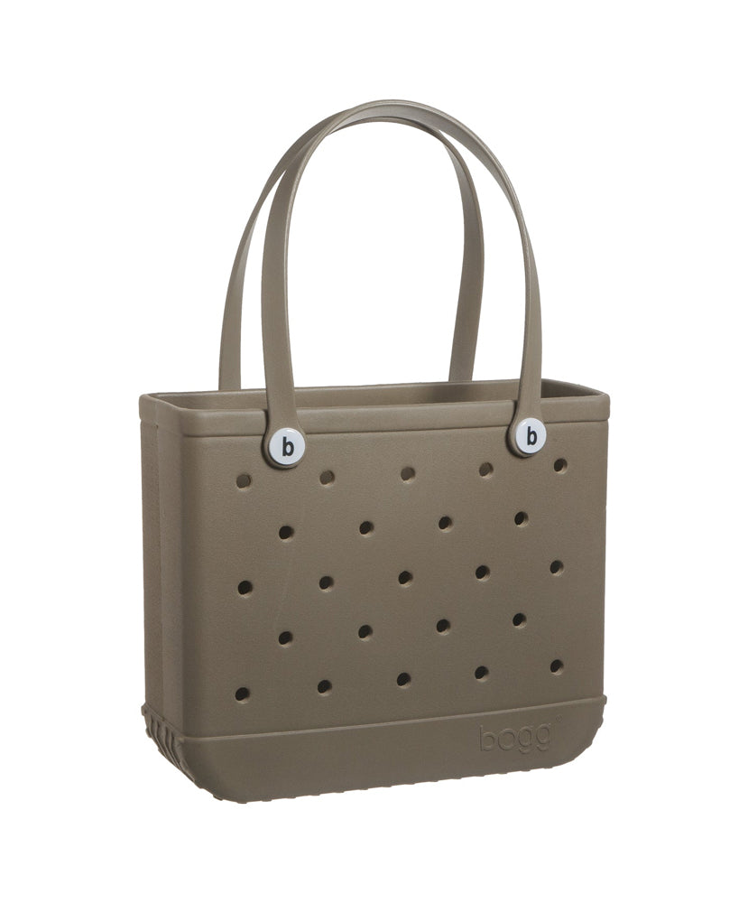 Maybe Baby, but not very small! Measuring in at a healthy 15x13x5.25, the Baby Bogg Bag features everything you know and love about the Original Bogg Bag, but in a smaller size. Each Baby Bogg Bag comes with one clear insert bag with 2 white buttons on the back that snaps into the holes, anywhere inside or outside the bag, to keep smaller items in reach.