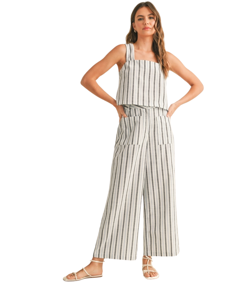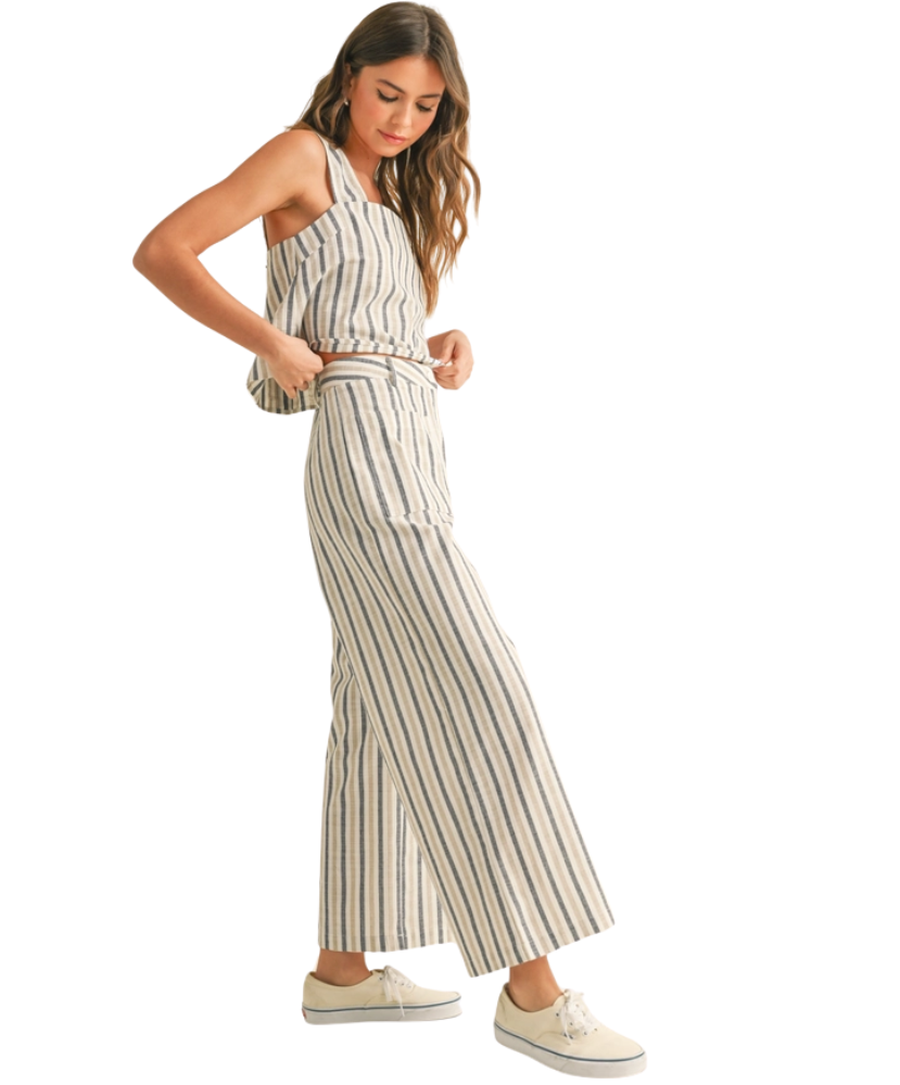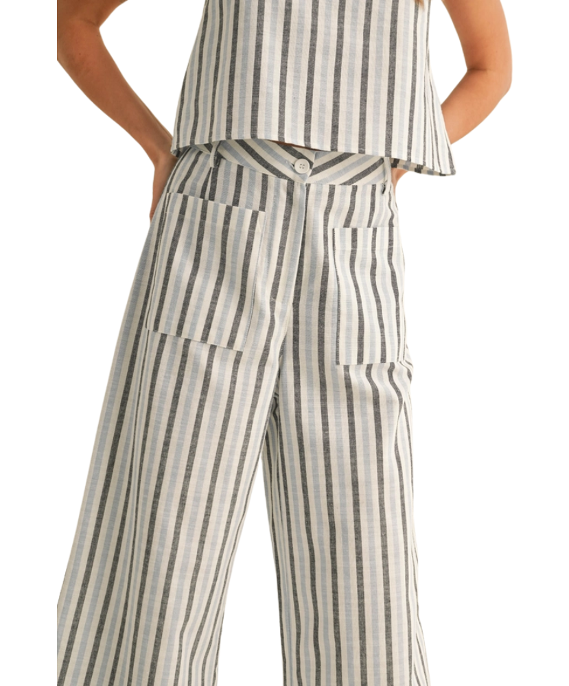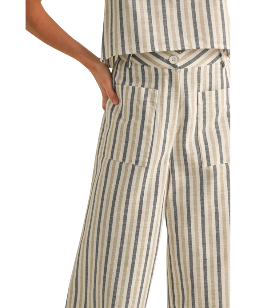 Elevate your everyday with the Paige Striped Linen Pants — the perfect blend of laid-back ease and tailored flair. Featuring a high-rise fit and wide-leg silhouette, these trousers bring breathable comfort and effortless style to your spring/summer lineup.