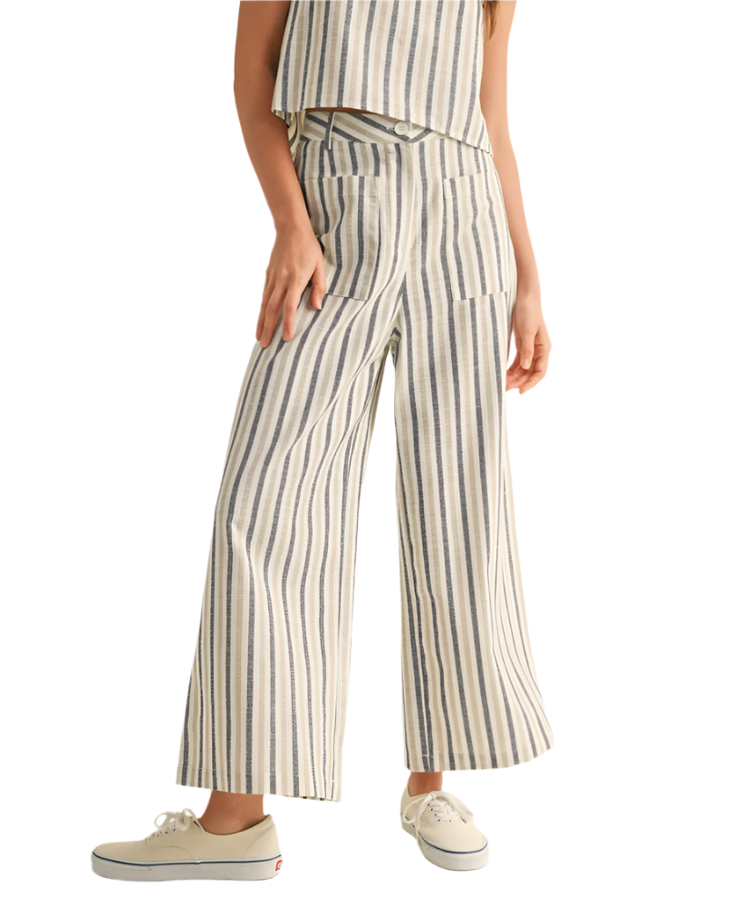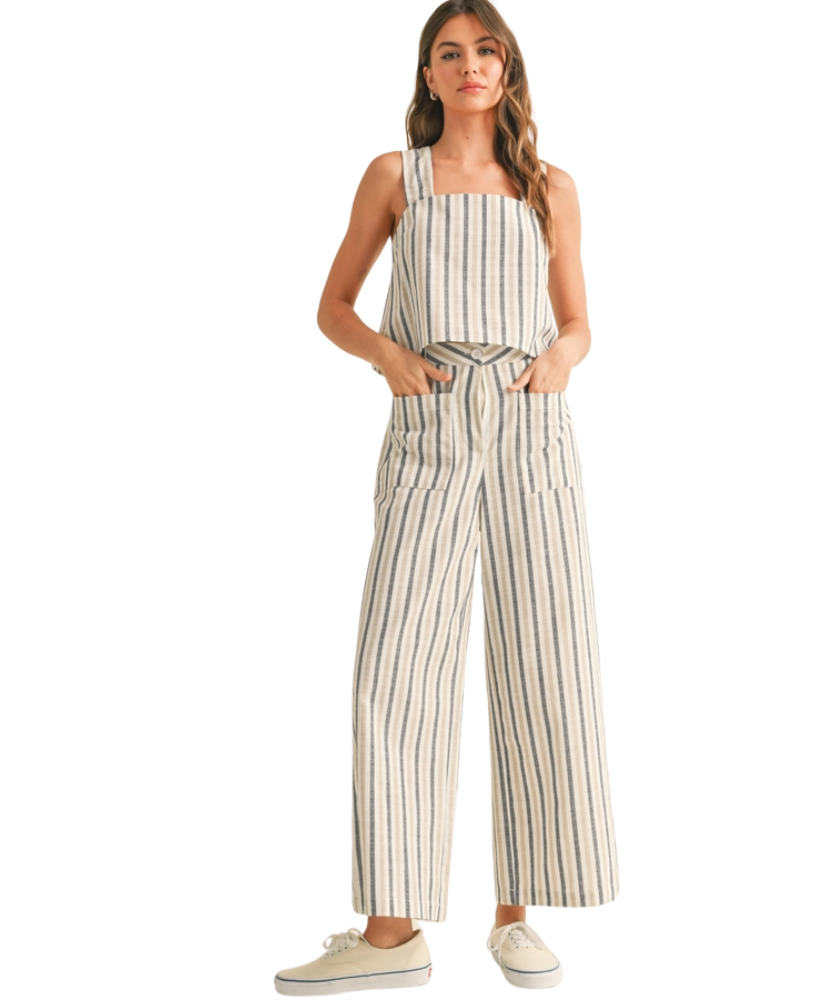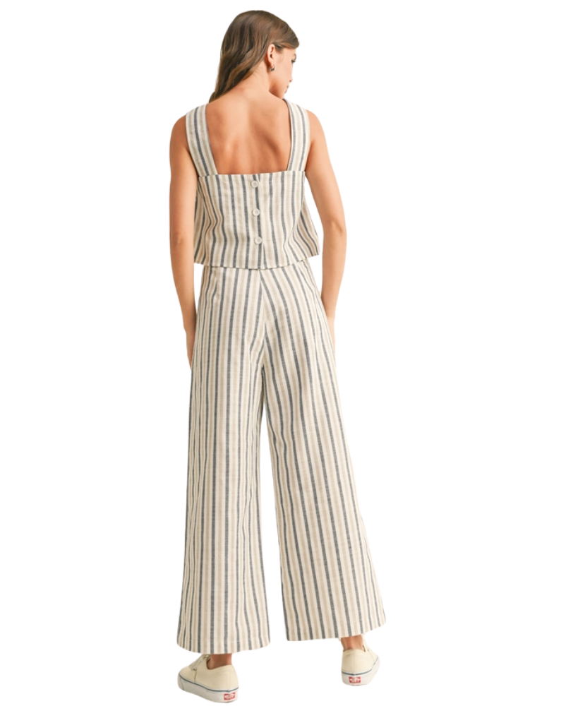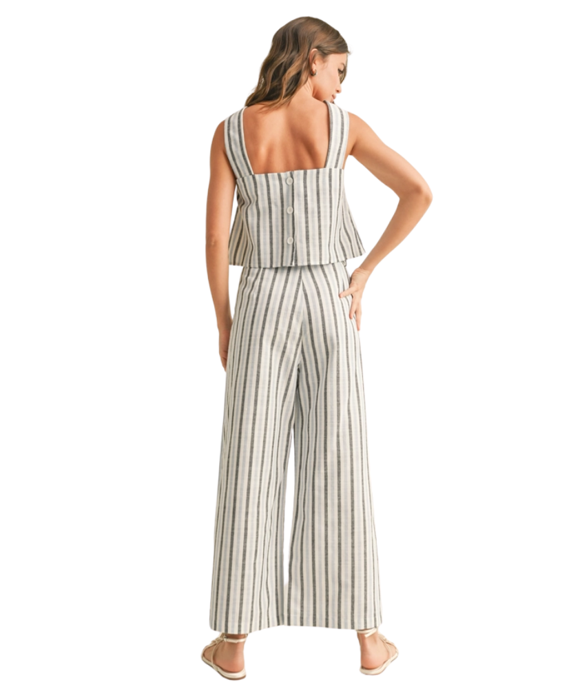 Elevate your everyday with the Paige Striped Linen Pants — the perfect blend of laid-back ease and tailored flair. Featuring a high-rise fit and wide-leg silhouette, these trousers bring breathable comfort and effortless style to your spring/summer lineup.
