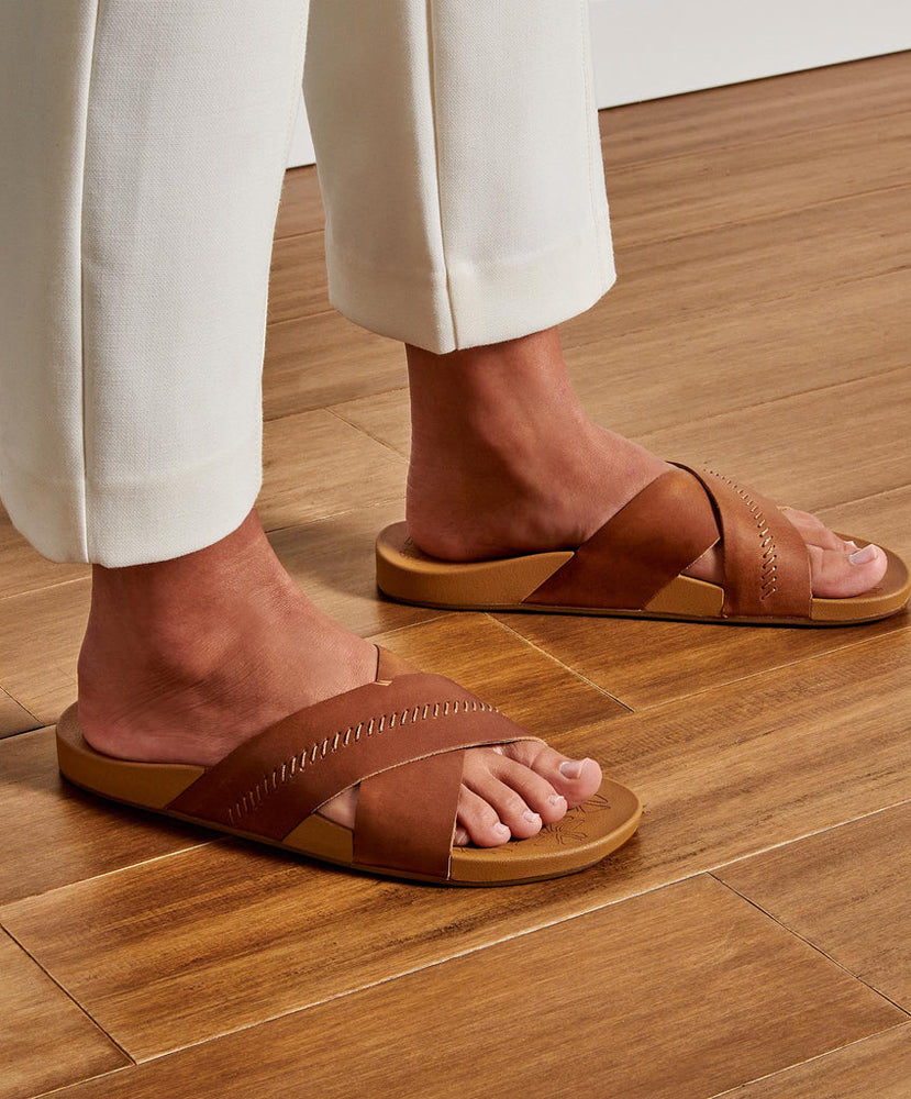 Premium leather with a beachy and boho design, this timeless slide blurs the line between relaxed and dressy. Wear it to the coffee shop in the morning and to dinner in the evening—Kipe‘a ‘Olu is a stitch above when it comes to comfort, quality, and ease. Made for the beach, not the ocean—prolonged contact with water may cause damage.