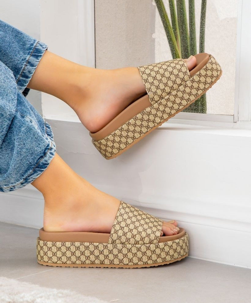 Elevate your style game with the Tila Printed Slide Sandal! These platform slides will add a touch of color to any outfit while providing comfort and height. The perfect shoe for a fun and playful look.