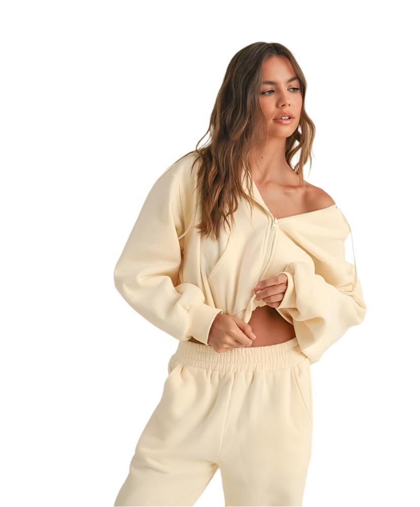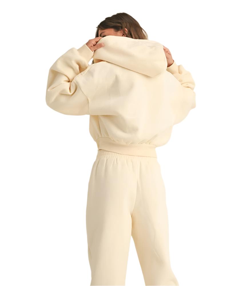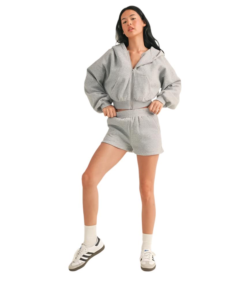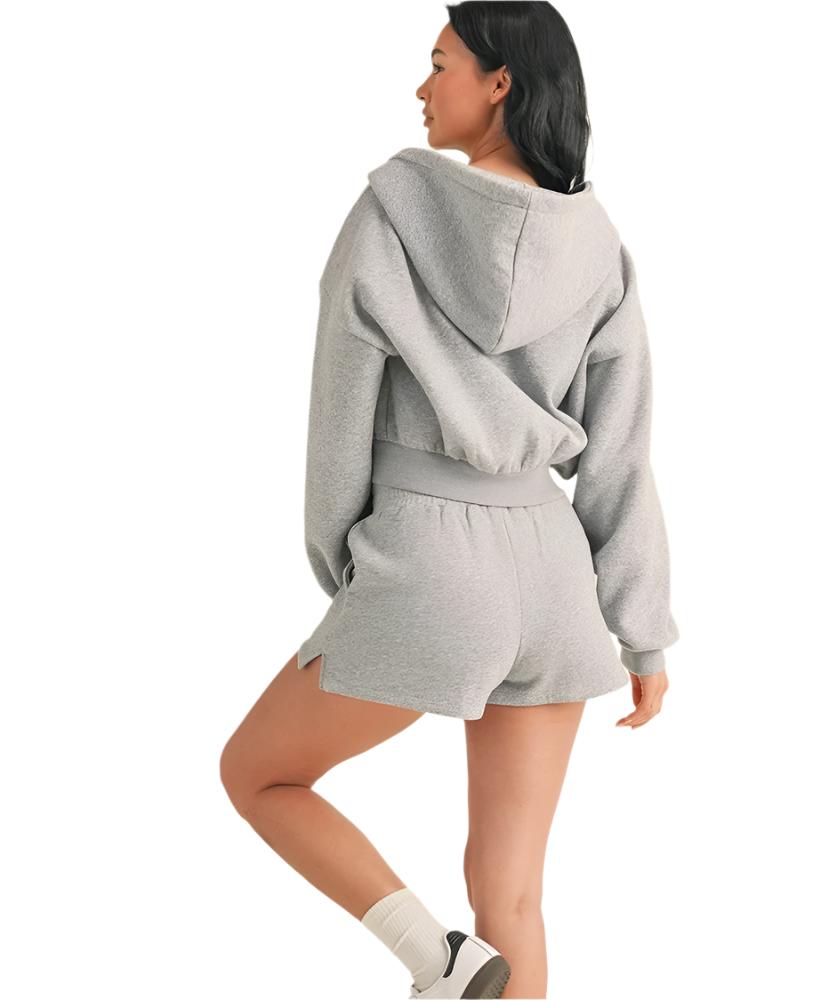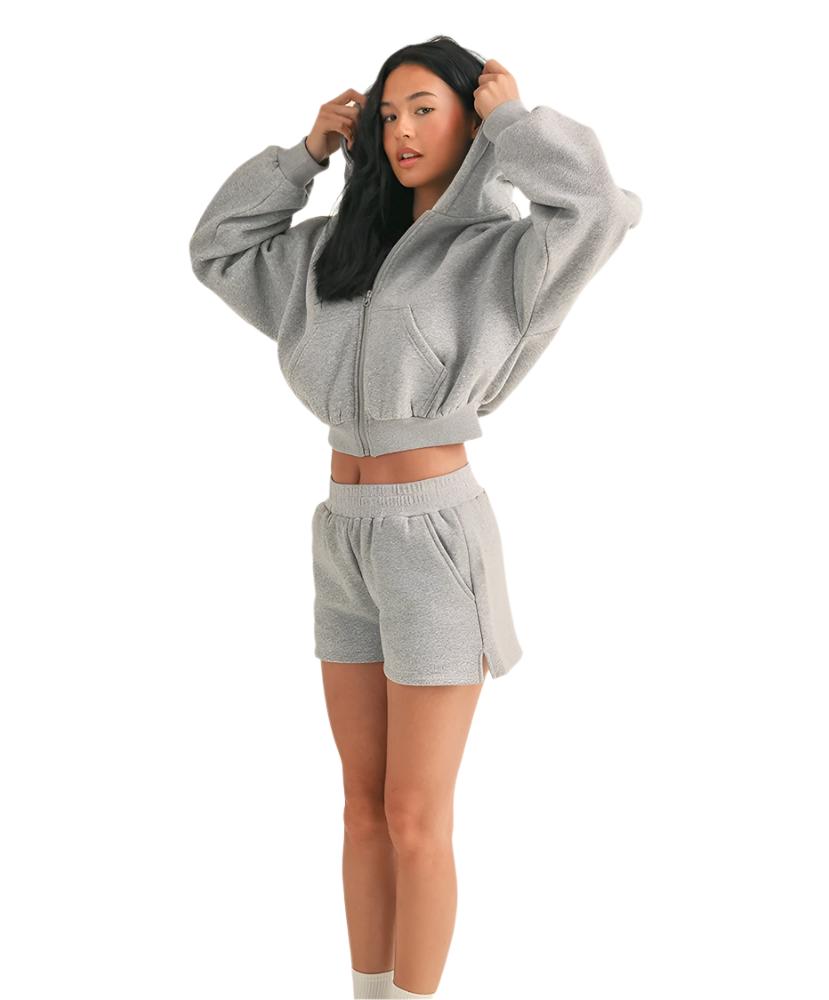 On-trend, oversized crop hoodie with a full zip closure. Side open pockets.