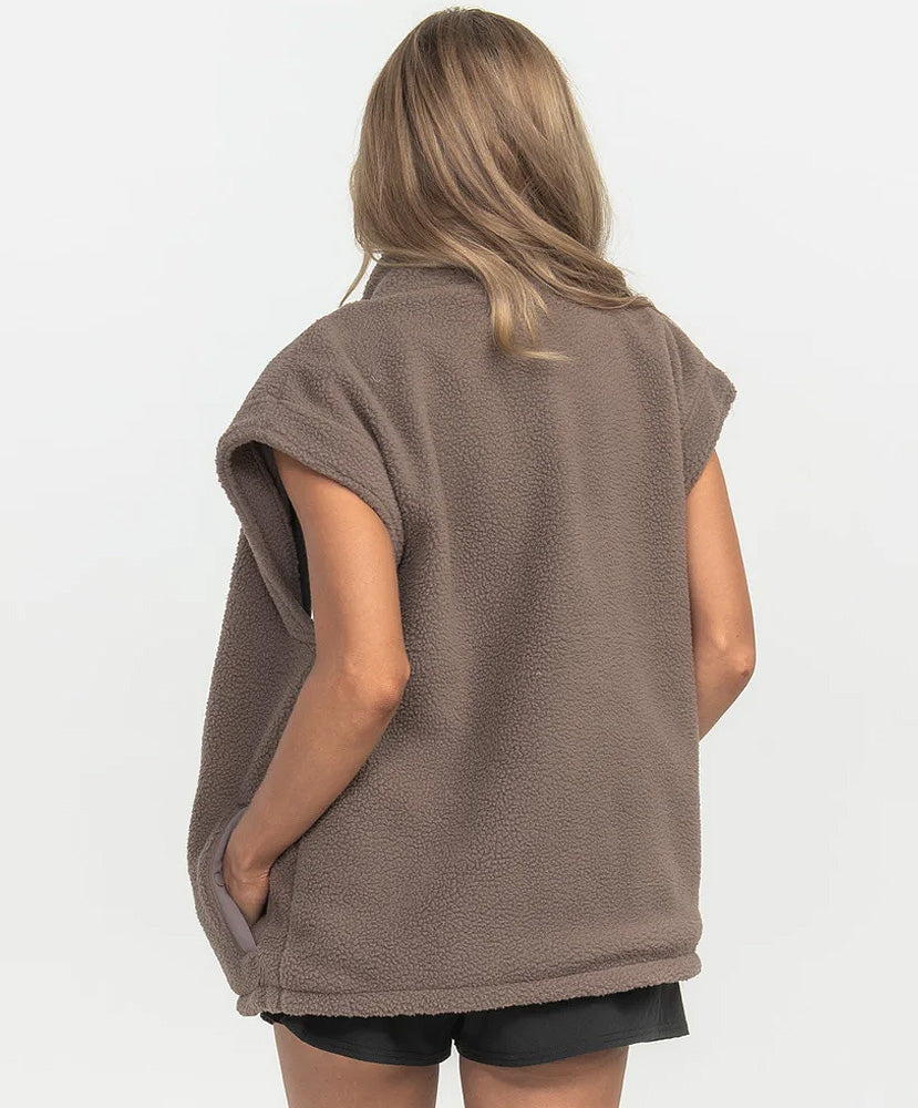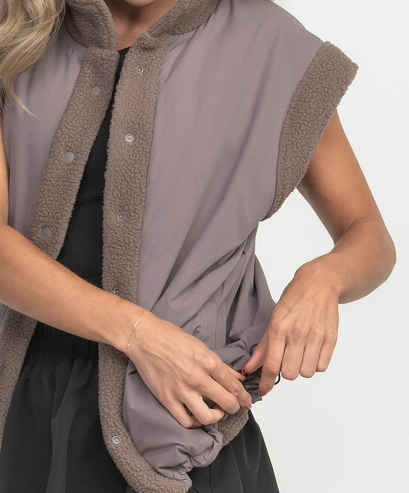 Versatile and cozy, our reversible fleece vest offers softness both right side and inside out. Enjoy an oversized fit for ultimate comfort and a piece that gives you two looks in one.