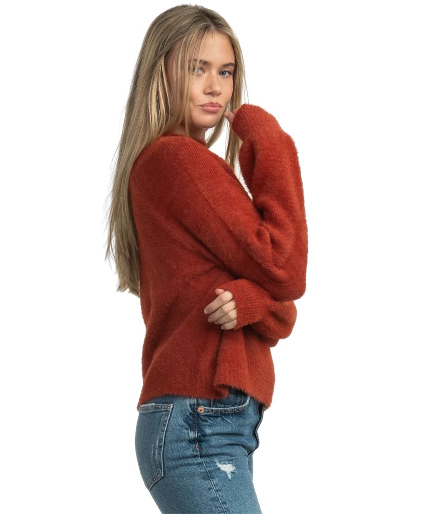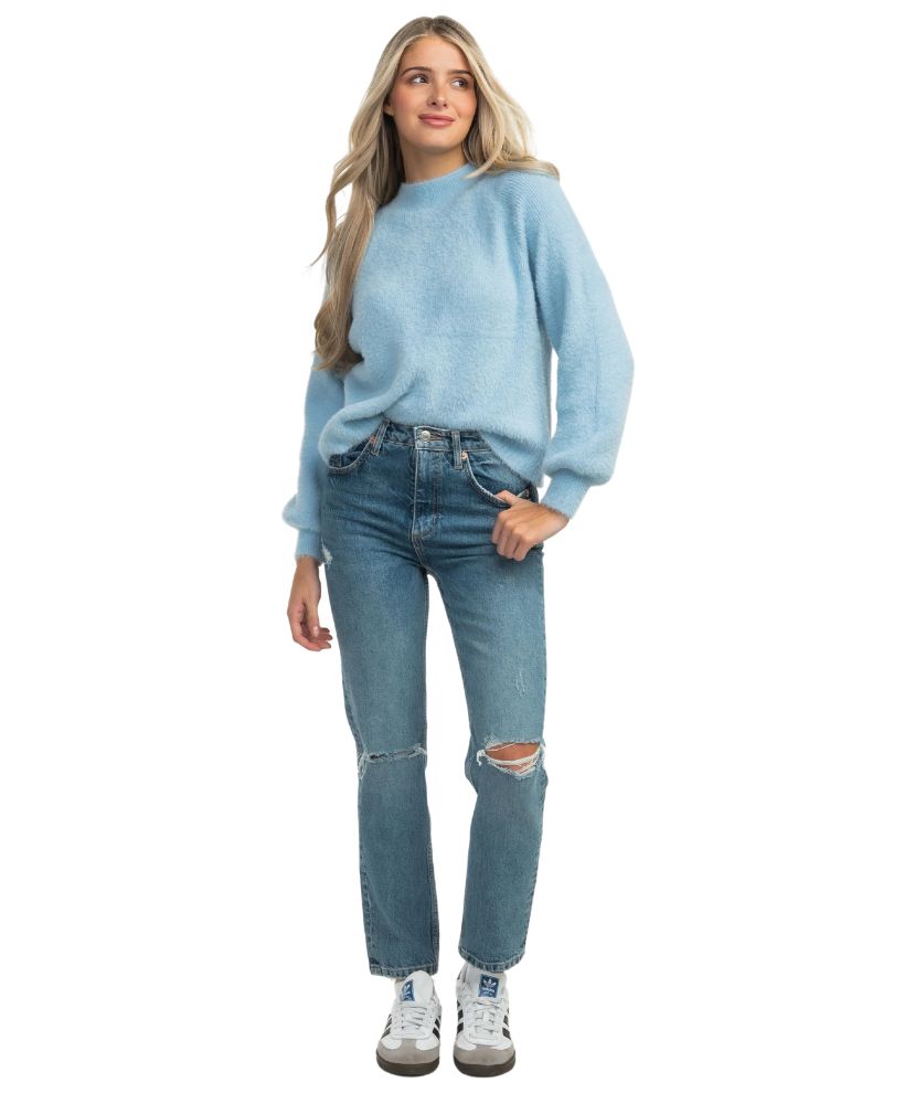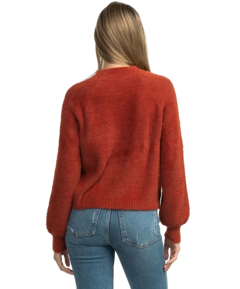 This top features balloon sleeves and a loose-fitting mock neck, adding just enough style to your most comfortable sweater. As usual, the Feather Knit material is stretchy and goes with just about all your favorite trendy bottoms!
