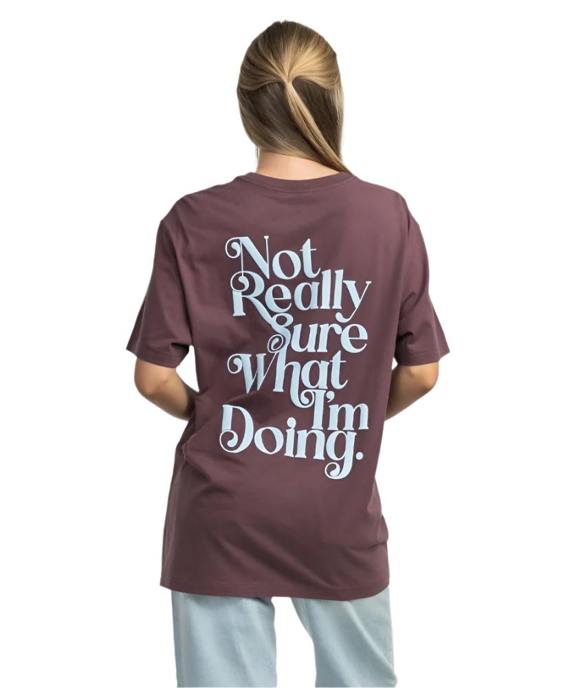 Sophie is 5’8” and is wearing a small On My Mind Puff Print Tee in Huckleberry.
