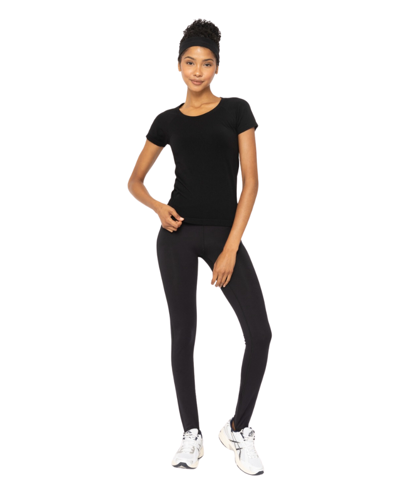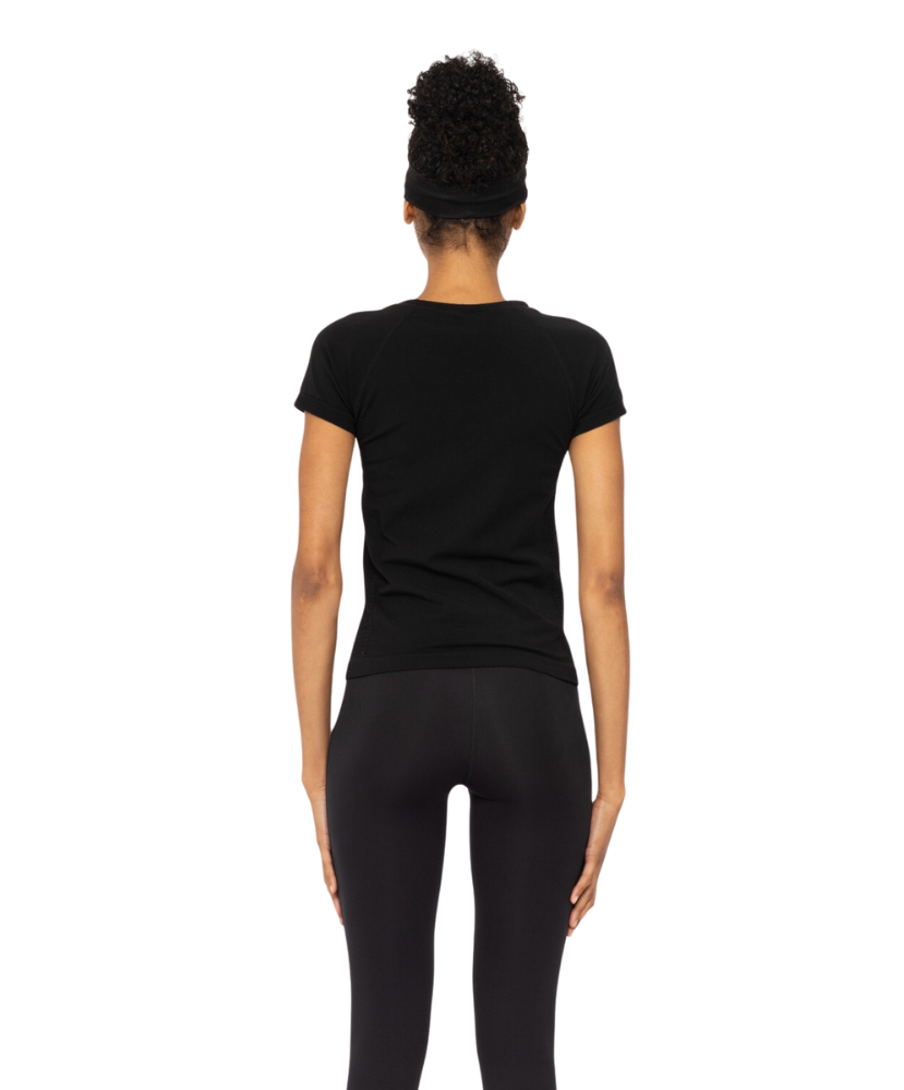 The seamless slim-fit active tee is ready to move with you. This tee features a super stretchy fit, raglan sleeves for mobility, perforated laser cutting at the side seam and underarm for ventilation, and a rib construction at the hem and sleeve openings to prevent from riding up.