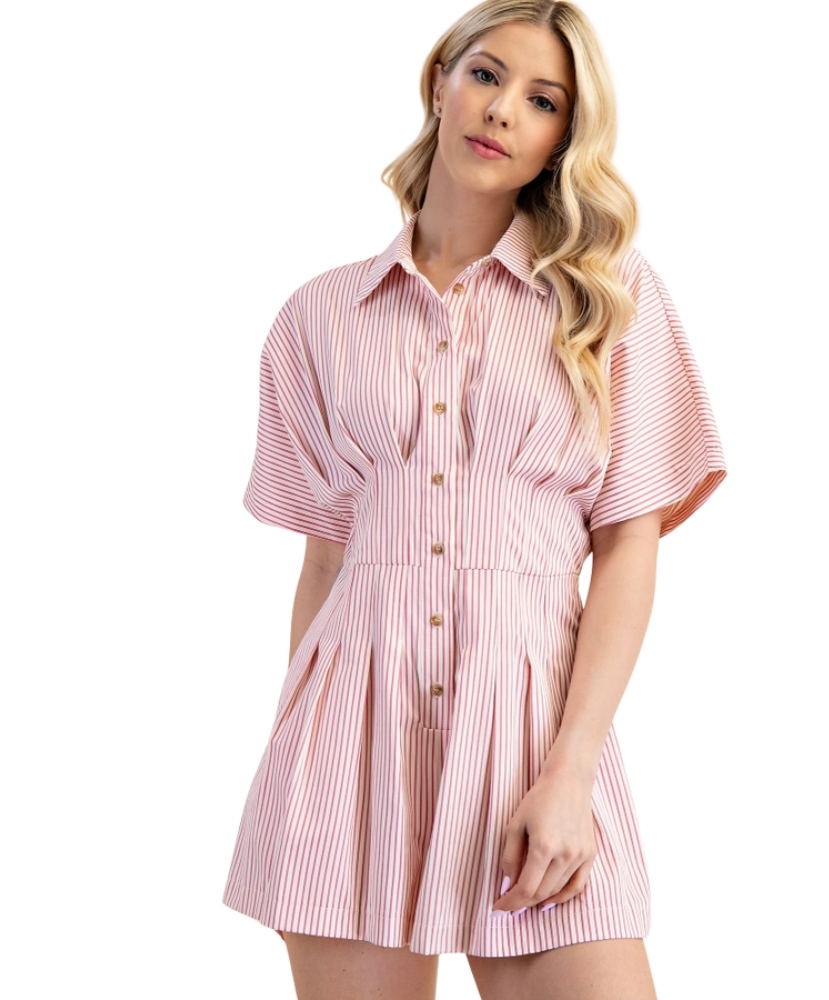 Collins Collared Waist Pleated Romper