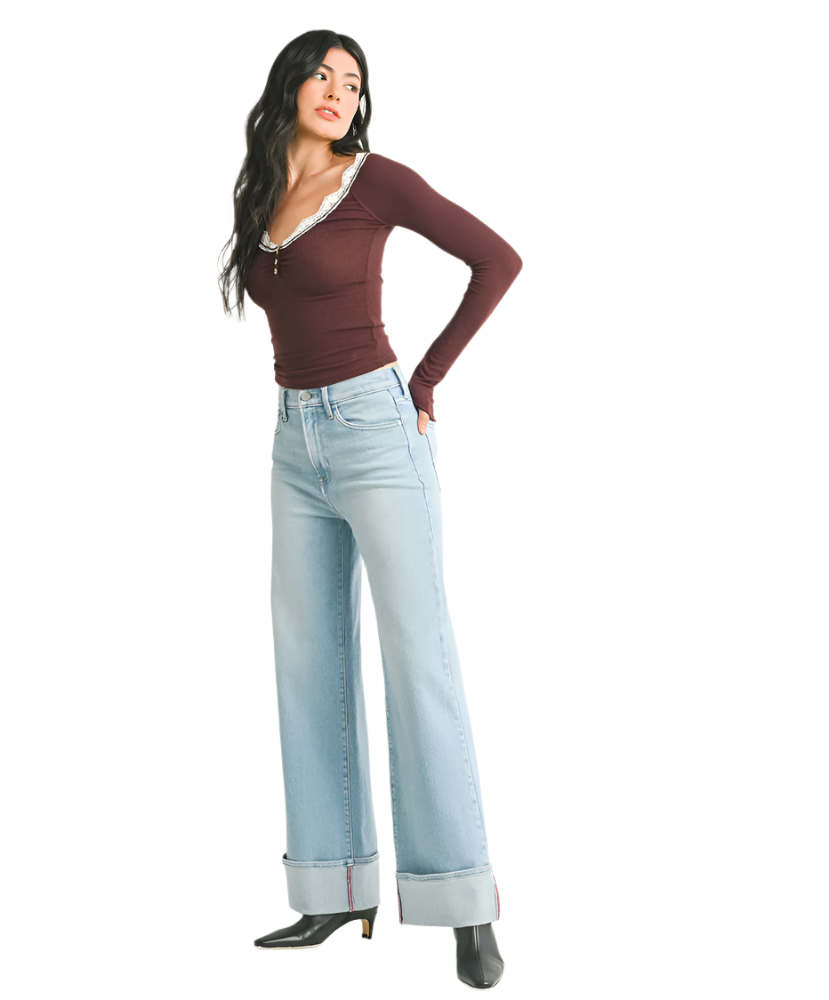 Say hello to your new denim obsession. The Catherine Cuffed Palazzo Jeans are bringing drama in the best way possible—with wide-leg flair and a bold cuff that’s here to make moves. Whether you're strutting into brunch or dancing down the street like you're in a shampoo commercial, these jeans will do the most (while you do the least).