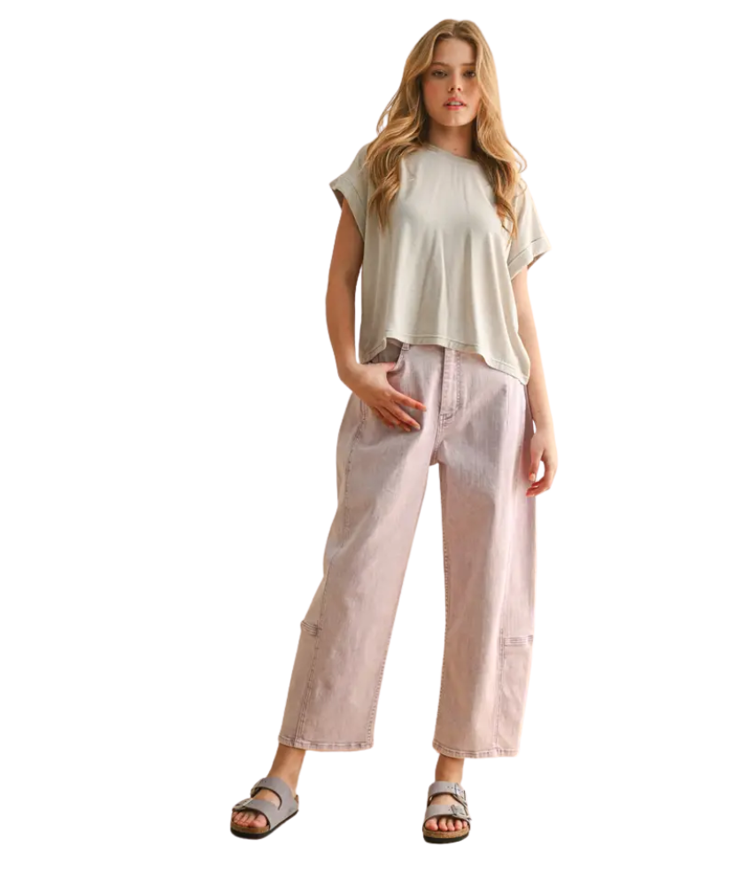 Add a little color pop to your everyday lineup. The Pop Color Barrel Pants bring a relaxed, on-trend silhouette with just enough stretch to keep things comfy. Their easy barrel leg shape pairs perfectly with sneakers, sandals, or boots — making them your new go-to for everything from coffee runs to casual nights out.
