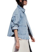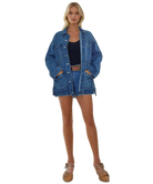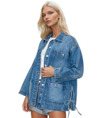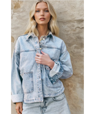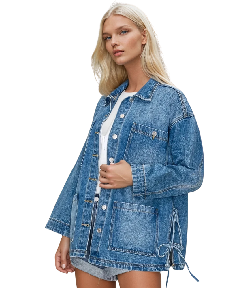 Meet your new layering essential—the Olivia Oversized Denim Jacket. Designed with an easy, relaxed fit and trendy side-tie details, this jacket brings a playful update to the classic denim staple. Large front patch pockets and a button-front closure add utility style, while the soft, washed denim finish keeps it effortlessly cool.