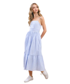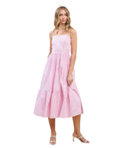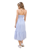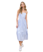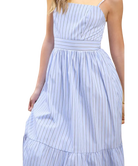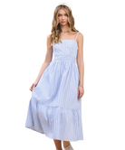 Timeless stripes meet effortless charm in this classic midi dress. Featuring adjustable spaghetti straps, a smocked back for the perfect fit, and a flowy ruffle hem, it’s equal parts polished and playful. Whether you’re pairing it with sandals for brunch or sneakers for a casual day out, this dress is made to move with you.