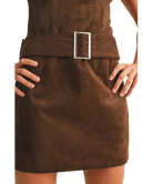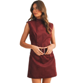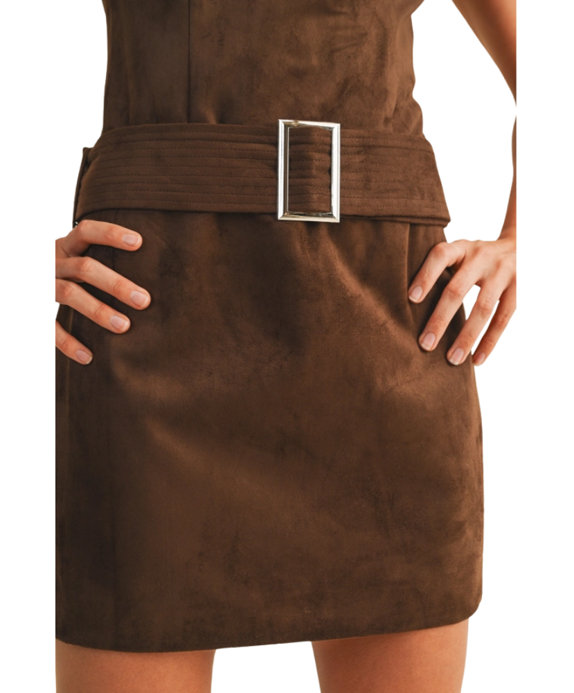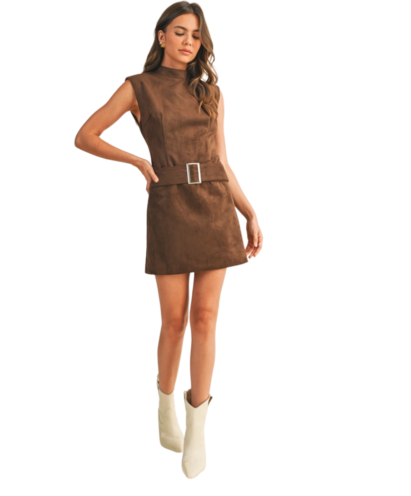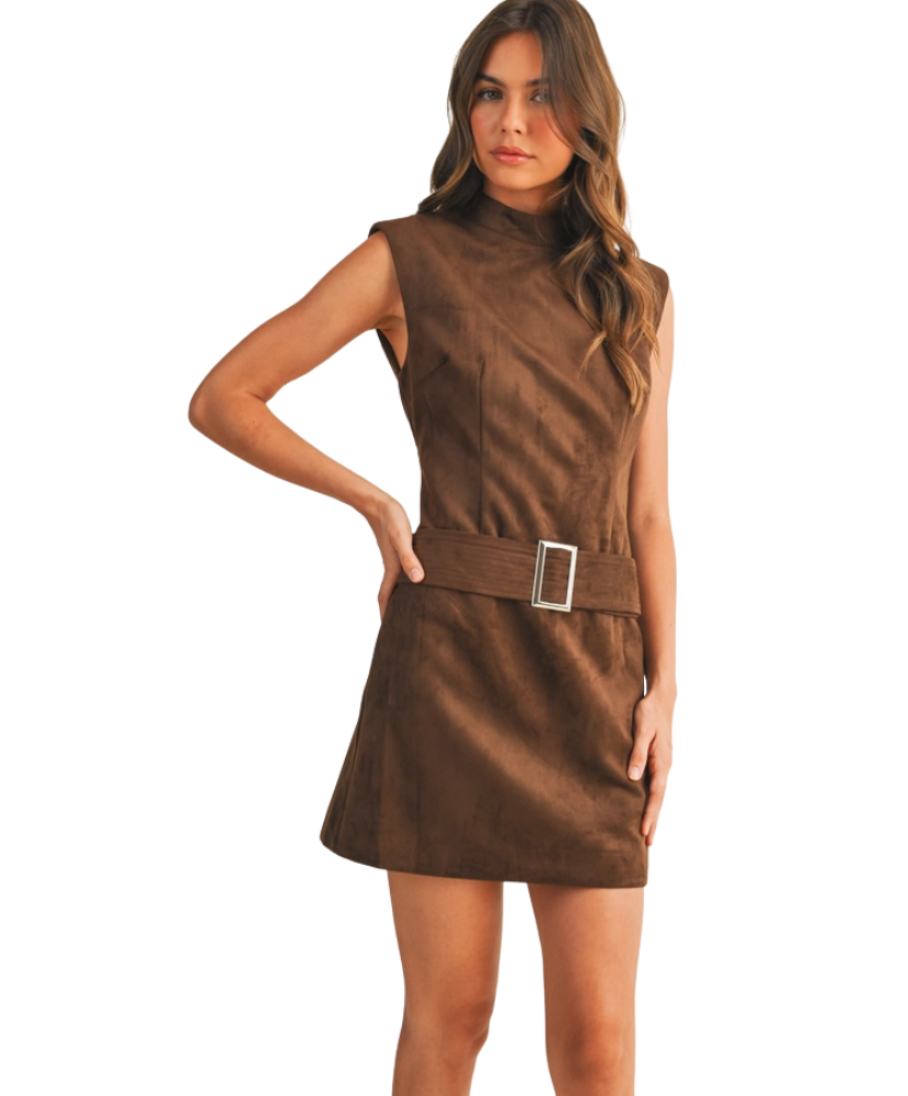 The Bailey Belted Mini Dress is your one-and-done statement piece. With its mock neck, sleeveless cut, and figure-flattering belted waist, this dress blends timeless polish with modern edge. The soft sueded finish gives it a luxe look, while the tailored fit keeps things structured and sophisticated. Whether you’re headed to dinner downtown or making an entrance at a holiday party, Bailey is the kind of dress that does all the talking for you.