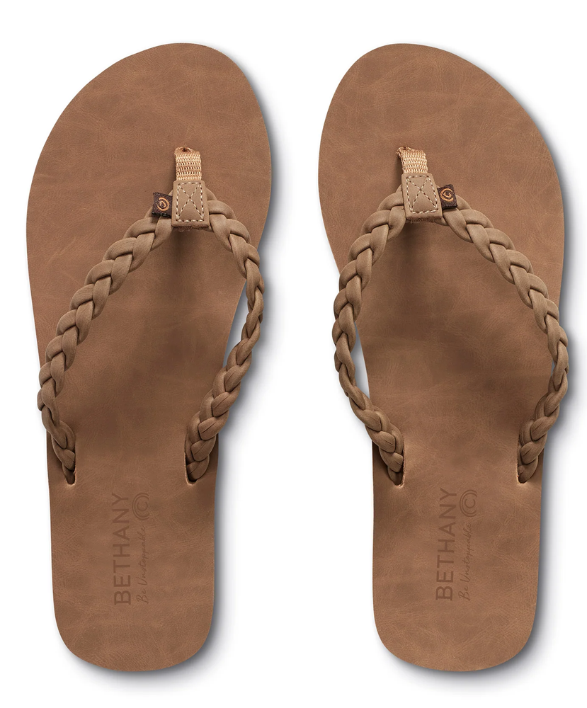 The Bethany Braided Pacifica blends casual surf styling and comfort, featuring a soft braided strap and synthetic leather top-sole with full arch support. As part of Bethany Hamilton's signature collection, a portion of proceeds supports the Beautifully Flawed Foundation.